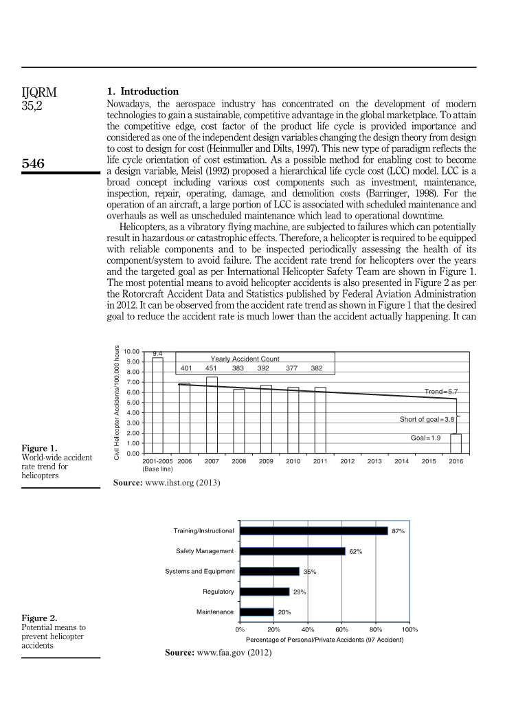 可以通过在设计时采用可靠的可靠性技术来避免不希望发生的事件,也可以通过在一定的运行周期内规划适当的维护活动来避免不希望发生的事件。为了在设计阶段或进行维护活动期间建立可靠的技术,需要投入成本。为了评估与可靠性和可维护性相关的成本,需要识别和定义那些影响直升机可靠性水平和维护操作的因素。在设计阶段选择更可靠的部件会给制造商带来额外的成本,但另一方面,这也会导致运营维护费用的减少。使用可靠的部件将减少不定期检查和维护的频率,从而降低维护成本。因此,开发能够准确估计可靠性和维护性因素的工具和方法是至关重要的,而可靠性和维护性因素会显著影响全生命周期成本法总量。