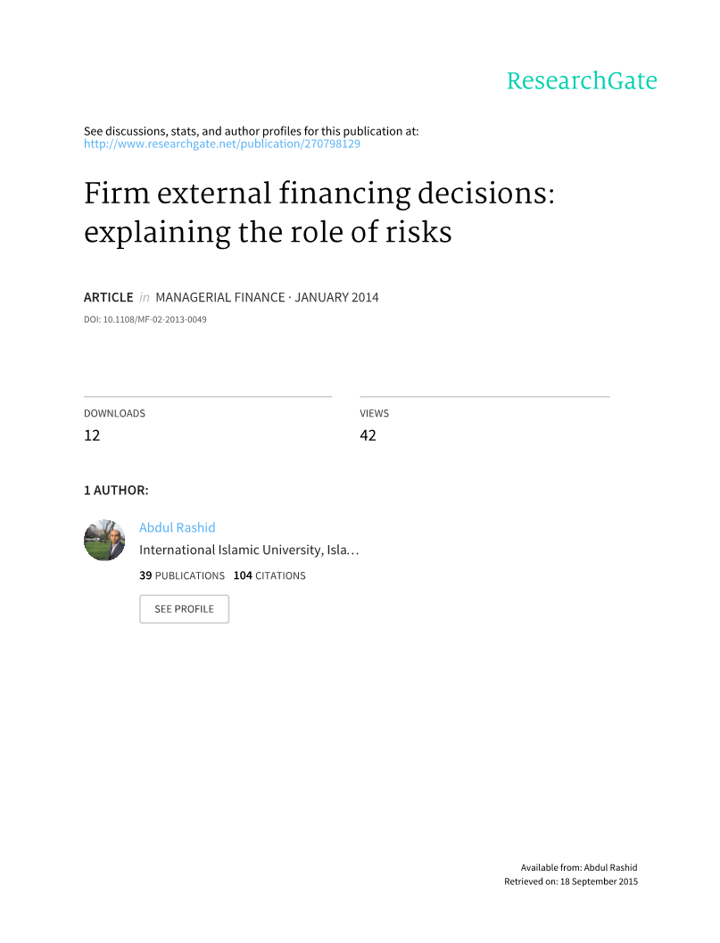 关键词:资本结构,企业融资,企业特定风险,宏观经济风险,外部融资,债务 - 股权选择