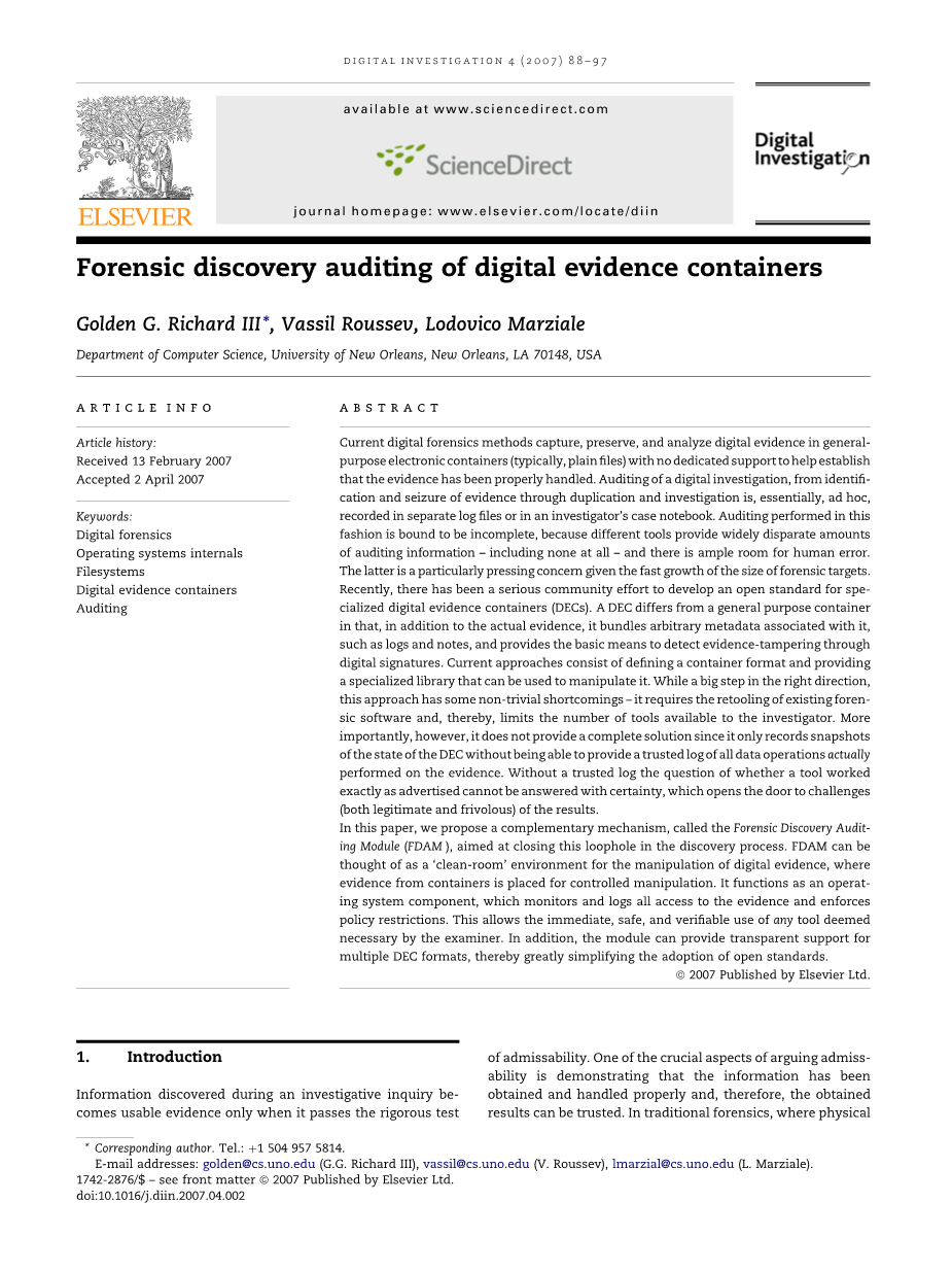 数字鉴证人员一般都遵循了类似的做法,有一个显着的例外,迄今为止他们缺乏防揭袋的数字信息的等价物。目前,先进的数字取证工具,国家在标准操作系统的组件操作和使用纯文本文件作为容器持有的文物。其中一个问题是,在法医过程中所用的通用工具可能潜在地改变工件。虽然这可以通过写拦截阻止,该工具进行哪些操作的问题仍然没有答案。例如,如果使用一个工具来搜索恶意软件,是整个磁盘搜索,或者只是选择了“典型”的地方呢?为了应对(部分)这个问题,最佳做法,规定所有工作中对证据的副本进行,执行的所有操作记录在审计日志中。对于本文的目的,我们指的是保持一个日志中的所有操作对证据的审核过程。