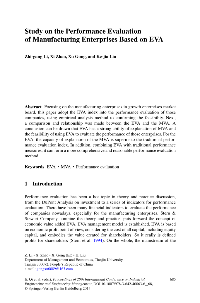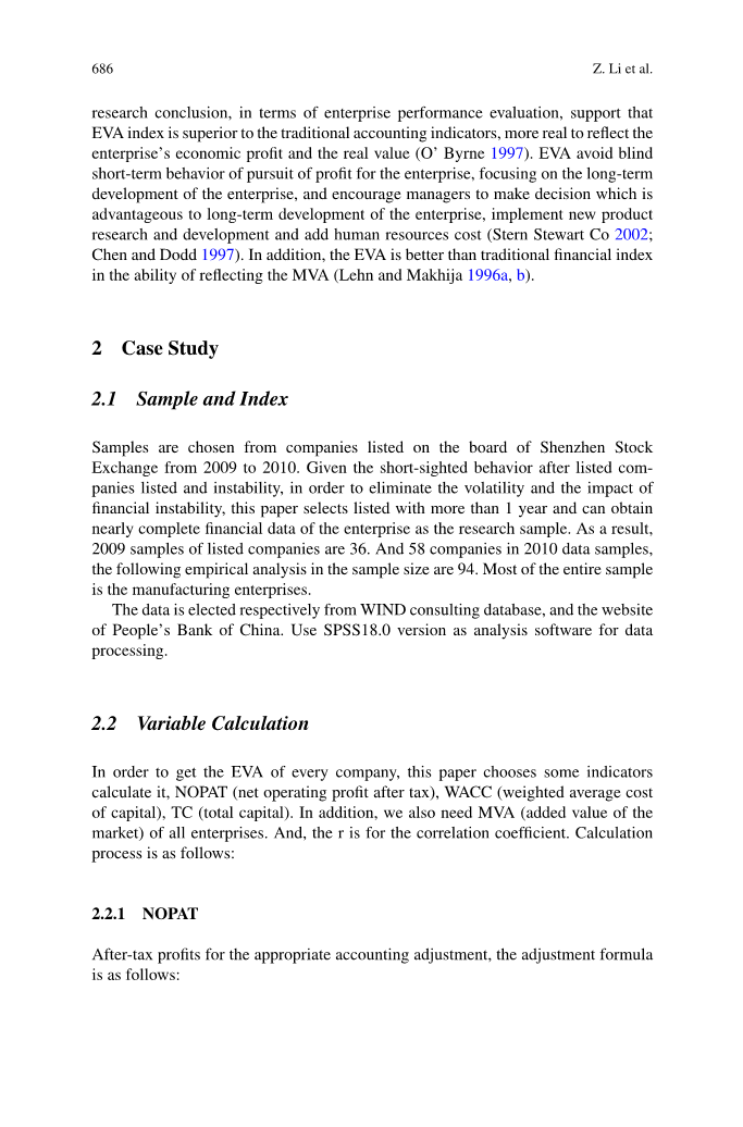 提出了本文的理论研究部分,传统的绩效评价方法没有考虑权益资本成本,在某种程度上,扭曲了企业的真实经营业绩。 伊娃是基于经济利润,把所有资本成本,包括股权资本,通过会计调整来消除当前会计准则中存在的信息失真。 伊娃体现一段或者损坏,为股东创造价值的定义为股东利润的企业。