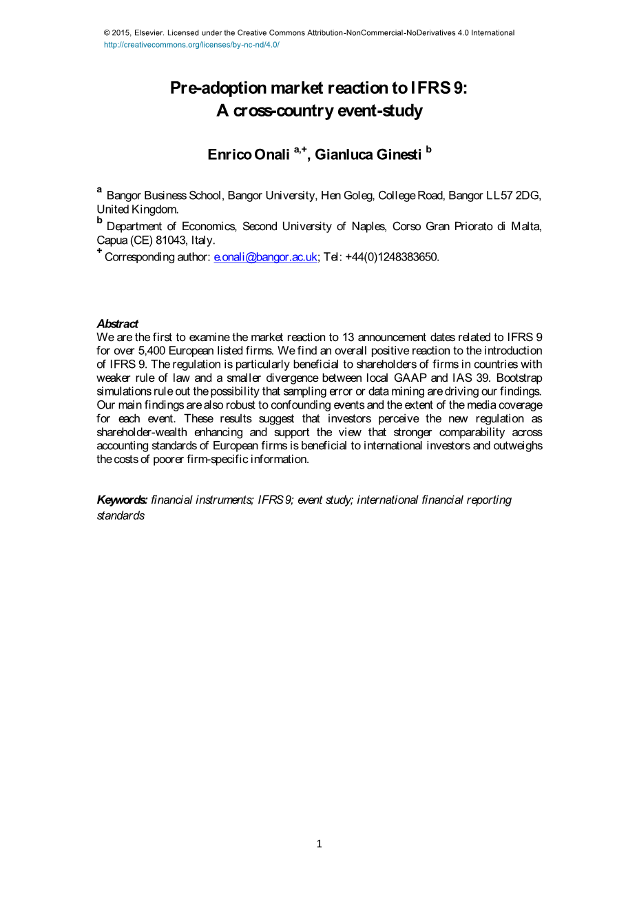 我们的论文与Armstrong等人(2010)的一项研究密切相关,该研究发现强制采用IFRS对市场有积极的反应,尤其是对采用前信息质量较低且信息不对称程度较高的公司。Armstrong等人(2010)也报告了信息质量较差的银行所表现出的更强烈(和积极)的反应,表明IAS 39带来了融合的好处。然而,Armstrong等人(2010)考虑到2005年11月之前的公告,因此忽略了与IFRS 9(2009年11月发布)相关的公告的影响。在本文中,我们的目标是通过研究投资者对IFRS 9的反应来扩展Armstrong等人的研究(2010)。这个主题具有重要性,因为IFRS 9尚未实现,标准设置过程仍在进行中。此外,投资者对IFRS 9的预期现在可以包含事后对强制性IFRS采用效果的看法,因此我们的结果可能与Armstrong等人(2010)的结果不同。