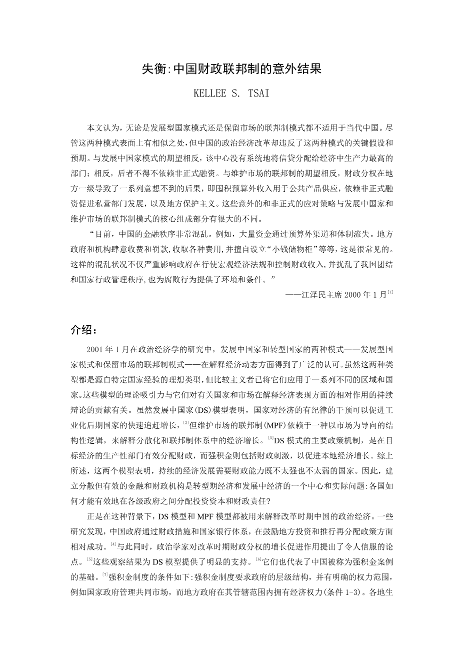 失衡:中国财政联邦制的意外结果外文翻译资料 2023-03-06 17:30:02 英语原文共 26 页,剩余内容已隐藏,支付完成后下载完整资料 英语译文共 21 页,剩余内容已隐藏,支付完成后下载完整资料 资料编号:[17853],资料为PDF文档或Word文档,PDF文档可免费转换为Word 原文和译文剩余内容已隐藏,您需要先支付 30元 才能查看原文和译文全部内容!立即支付 发小红书推广免费获取该资料资格。点击链接进入获取推广文案即可: Ai一键组稿 | 降AI率 | 降重复率 | 论文一键排版 PREVIOUS NEXT 您可能感兴趣的文章 预算创新、信息质量和部门绩效外文翻译资料 印度信息技术行业财务分析 ——以威普罗和印孚瑟斯公司为例外文翻译资料 真实性与公司治理外文翻译资料 财产责任保险公司投资组合选择的决定因素外文翻译资料 失衡:中国财政联邦制的意外结果外文翻译资料 财务弹性是影响亚洲企业投资效率的因素之一外文翻译资料 风险管理在审计中的地位及其重要性外文翻译资料 杠杆和公司绩效:机构环境是否重要?外文翻译资料 印度尼西亚企业社会、环境与财务绩效之间的关系外文翻译资料 为中国纯电动公交行业(PEB) 发展新型商业模式外文翻译资料