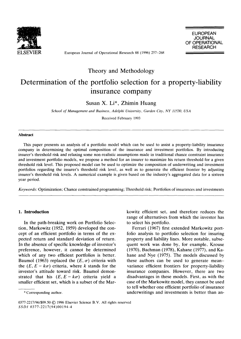 财产责任保险公司投资组合选择的决定因素外文翻译资料