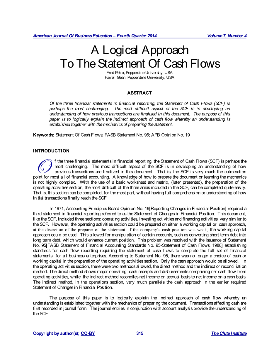 在财务报告的三种财务报表中,现金流量表(SCF)可能是最具挑战性的。SCF最困难的方面是理解如何在现金流量表中重现以前的事务。本文的目的是逻辑地解释现金流量的间接方法,即理解编制现金流量报表的机制。