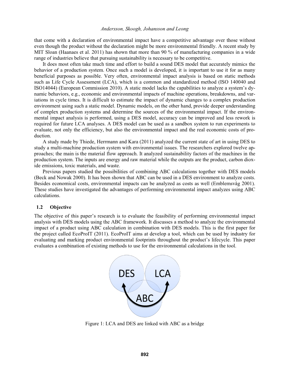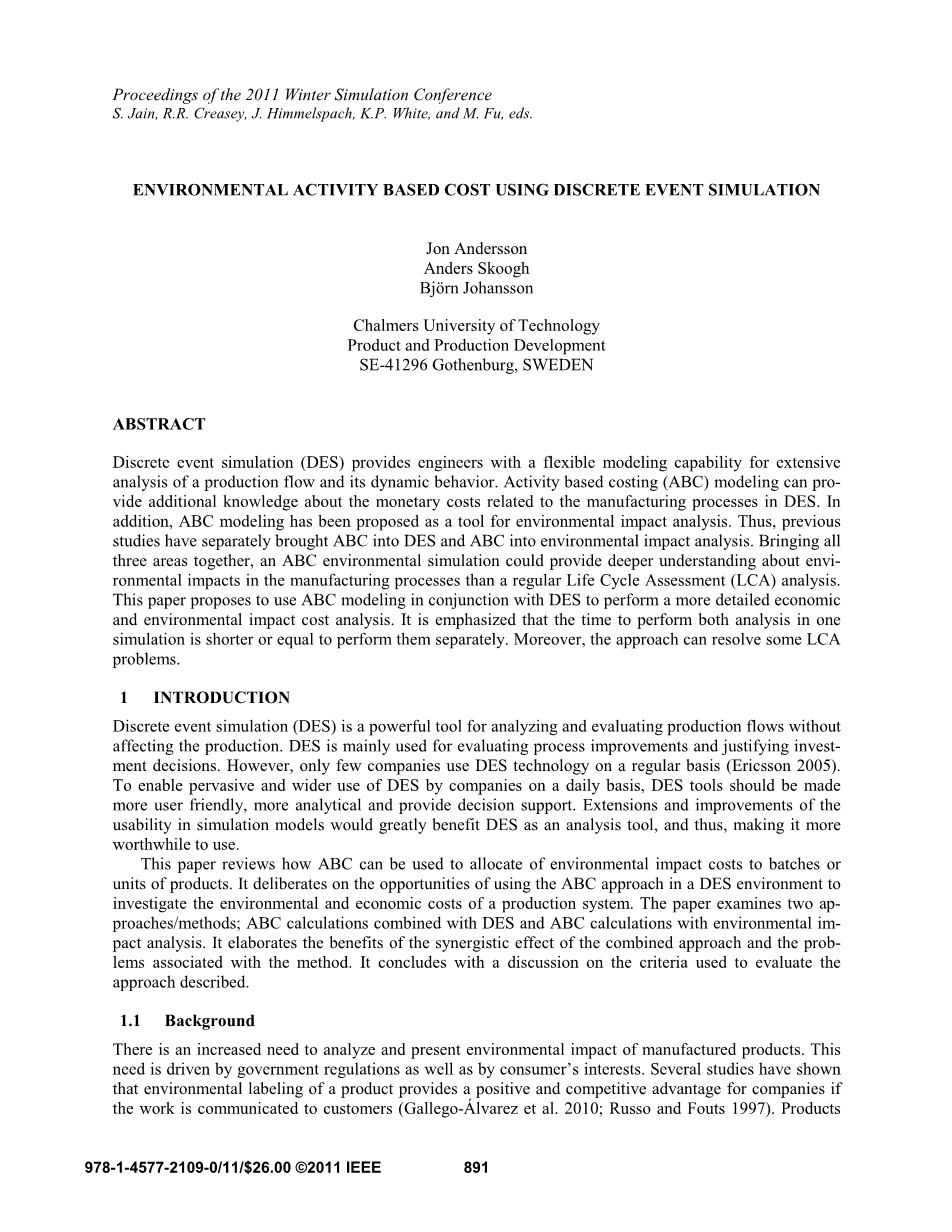 以前的论文研究了将ABC计算与DES模型相结合的可能性(Beck和Nowak 2000)。研究结果表明ABC可以在DES环境中用于分析成本。除了经济成本之外,环境影响也可以作为成本进行分析(Emblemsvaring;g 2001)。这些研究调查了使用ABC计算进行环境影响分析的优势。