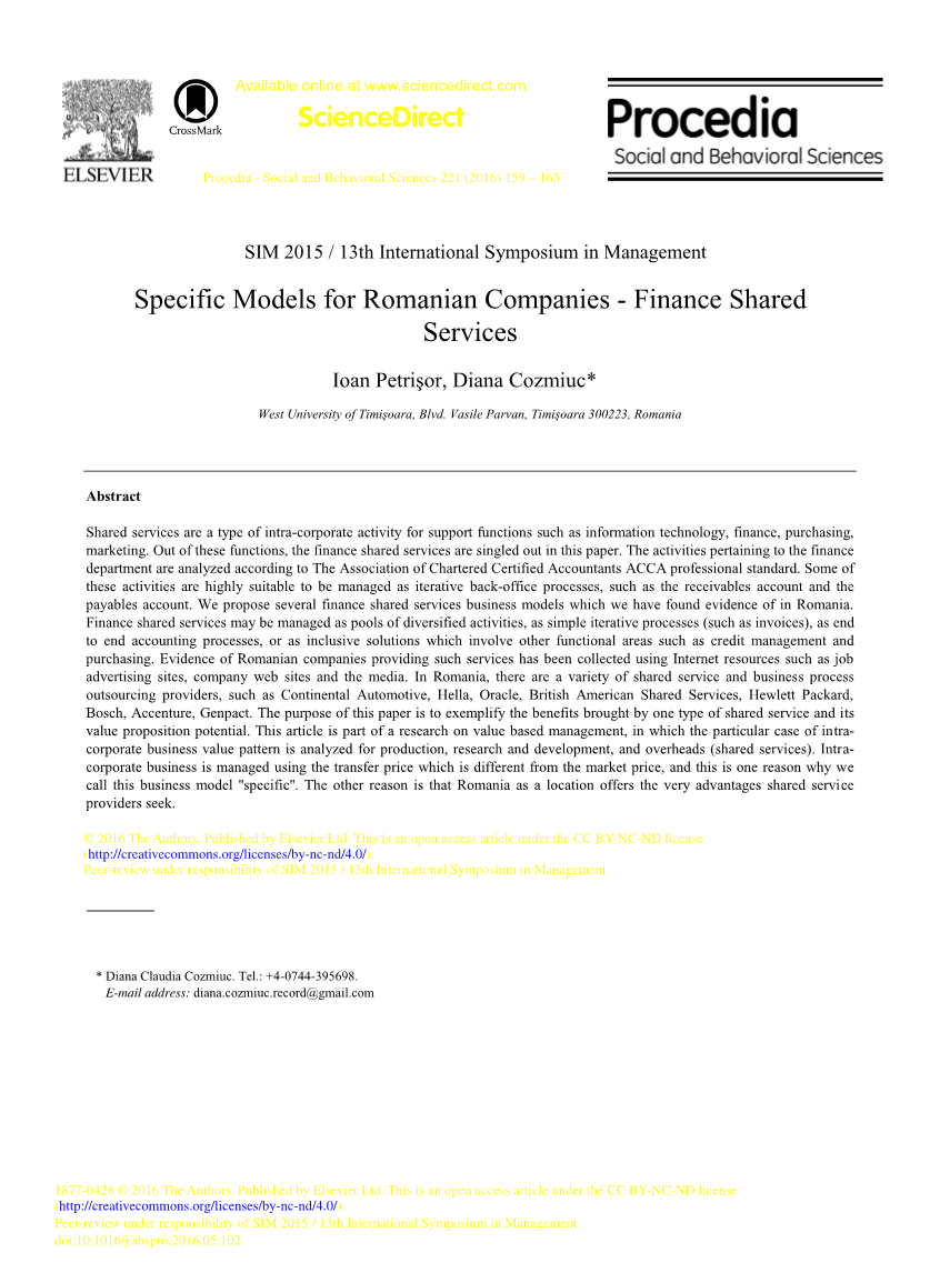 共享服务是特定的商业模式,原因有几个。 证明这篇文章有道理的是转让价格或分配与市场价格和股东利润的不同逻辑。市场价格越高,组织创造的价值越高; 转让价格越低,组织创造的价值越高。利润是整个公司的股东的责任,但对于其分支机构来说,这是主要用于税收目的的成本加价。 共享服务的主要价值驱动因素是最小化转移价格。本文是对基于价值的管理进行研究的一部分,它分析企业内部活动的特殊性。这就是共享服务“特定”的原因。 根据定义,共享服务是在几个地方在公司其他地方找到的服务的重新安置。他们带来的好处与他们的位置有关:质量,效率(学习经济,流程改进,消除闲置时间,低人员成本潜力),提供所有这些的灵活性和稳定性。我们从共享服务模型中推断出这些优势,并在普华永道(2008)的作品中发现了类似的论点。将这些活动放在一个地点时,它们会带来规模经济效益,并创造出从基础活动转向复杂知识密集型活动的场所。随着规模的扩大,诸如会计管理,信息技术和数据库管理等知识密集型活动为大量客户放置在单一位置时增加了价值。 这是至今尚未探索的共享服务管理的又一步。我们在安永会计师事务所(2014)的作品中找到了相关建议。罗马尼亚有可能提供所有这些好处,但关于罗马尼亚共享服务市场的研究超出了本文的范围。