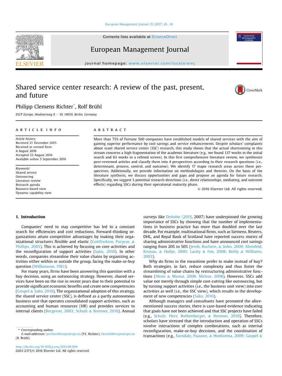 五、组织变革。这一领域的不同问题涉及组织变革在个人和组织层面上的影响分析。首先,学者们研究了在整个变革过程中(例如,人力资源人员的剩余角色)对员工的影响。从蓝图到操作(Arnoudamp;Falzon,2012),并发现了许多与项目成功相关的正面和负面影响。例如,客户和SSC之间的疏远会对项目的成功产生负面影响。其次,一些研究已经观察到变化的影响,并将重点放在IT资源上(例如,Dayamp;Norris,2006),特别是ERP系统的变化。最后,其他人在引入之前和引入过程中关注了群体的作用,并将关键群体(如机构企业家)确定为鼓励SSC实施的战略群体(如Hyveuro;onen,Jeuro;arvinen,Oulasvirta,amp;Pellinen,2012;Iveroth,2011)。总之,学者们认识到,建立SSCs需要根本性的变革,但也会导致企业内部发生根本性的变革。