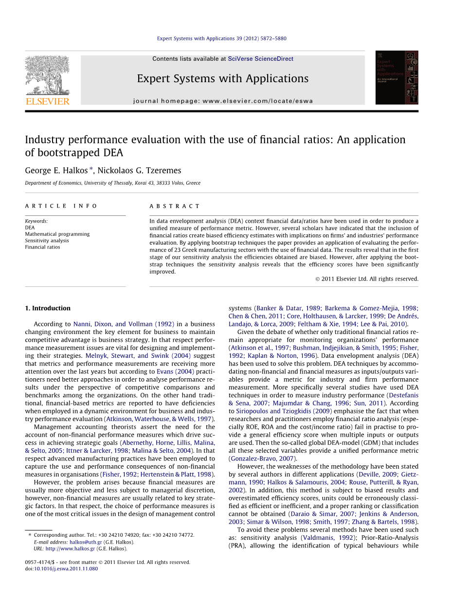 使用财务比率的行业绩效评估:自举DEA的应用外文翻译资料