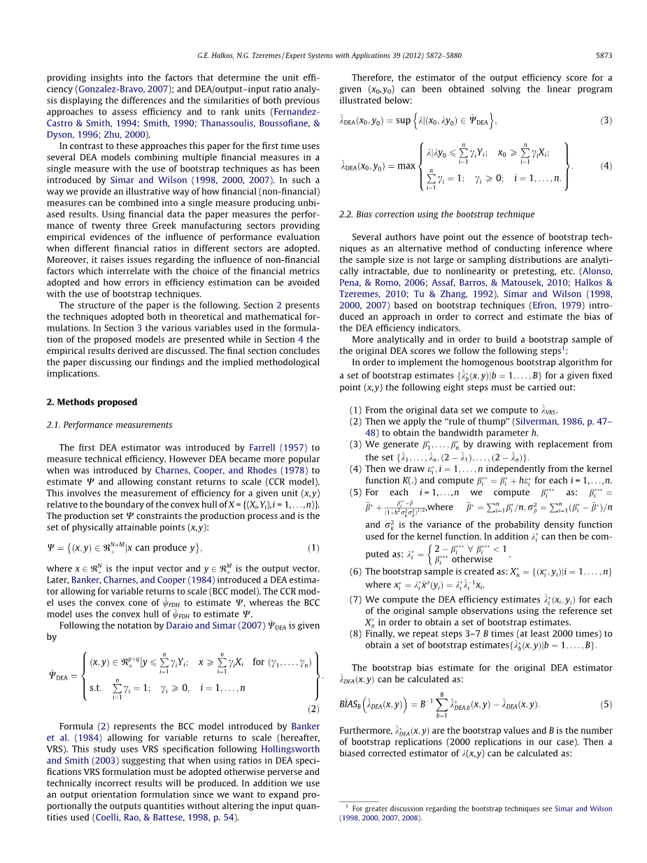 一些作者指出,自举技术的本质是进行推理的另一种方法,其样本量不大或样本分布在分析上难以处理,原因在于非线性或预测试等等(Alonso等,2006,Assaf等,2010,Halkos和Tzeremes,2010,Tu和Zhang,1992)。 Simar和Wilson,1998,Simar和Wilson,2000,Simar和Wilson,2007基于自助技术(Efron,1979)引入了一种方法来纠正和估计DEA效率指标的偏差。