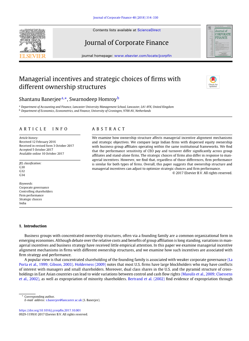 基于不同所有权结构的管理层激励与企业战略选择
