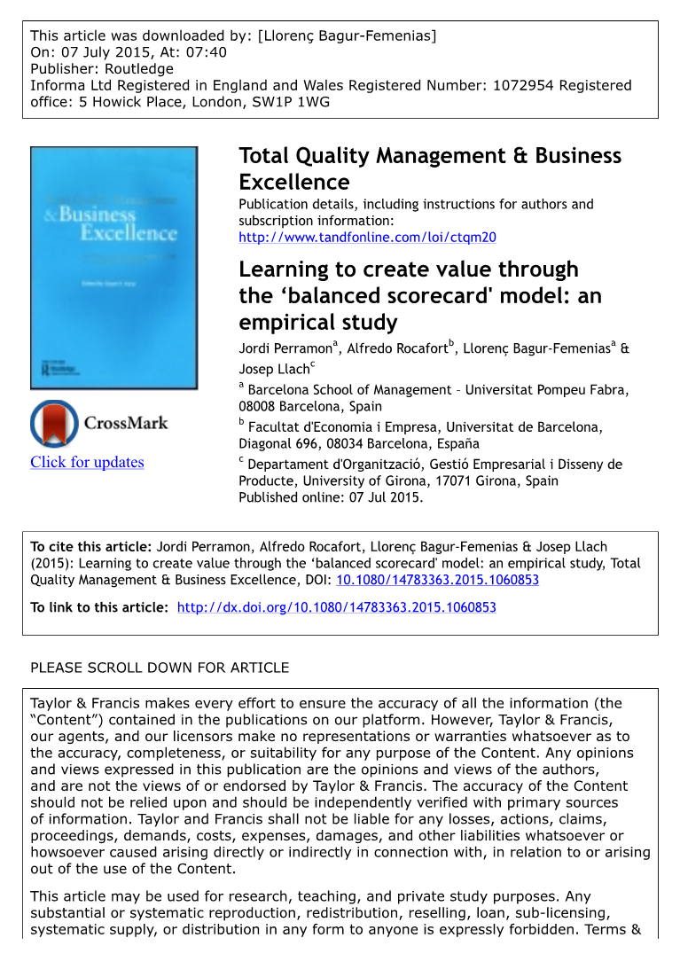 本文的贡献在于验证了一个基于平衡计分卡的模型,确认或驳斥了构成本文主要观点基础的因果关系之间的联系。