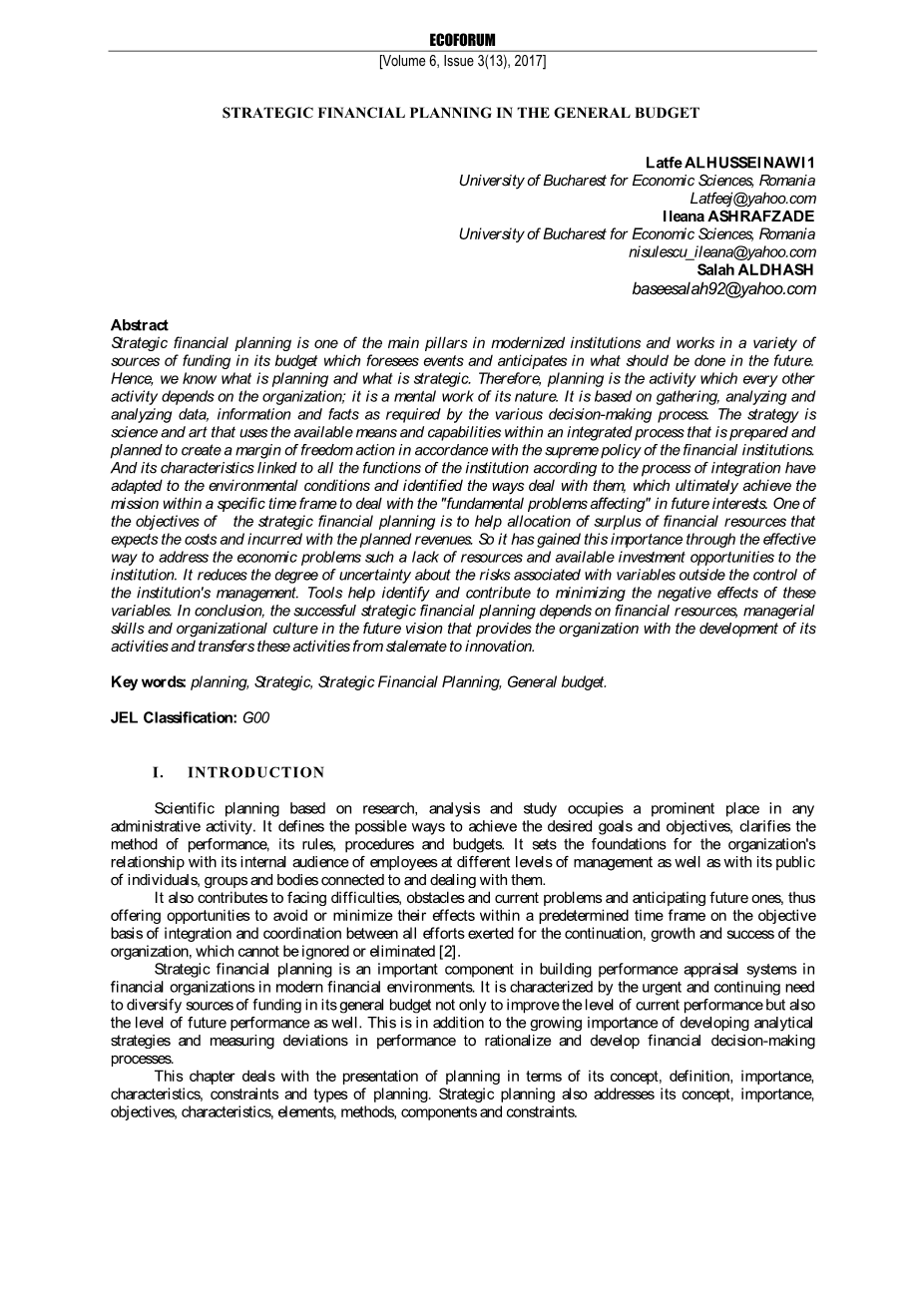 战略财务规划是在现代金融环境中建立金融机构绩效评估系统的重要组成部分。 其特点是迫切和持续需要在其一般预算中分散资金来源,不仅要提高当前业绩水平,还要提高未来业绩水平。此外,制定分析战略和衡量绩效偏差以合理化和发展财务决策过程的重要性日益增加。