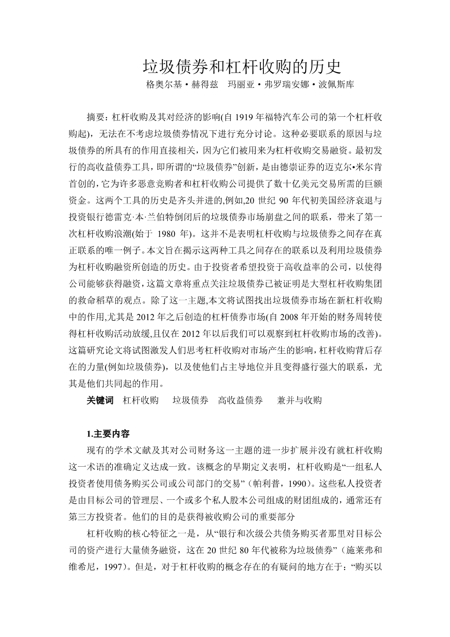 双汇国际跨国杠杆收购SFD案例研究外文翻译资料
