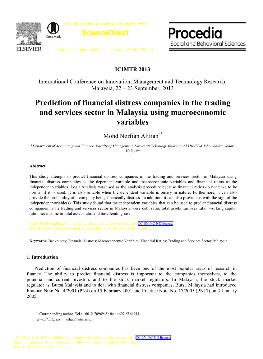 2006年5月5日,对PN17进行了进一步修订,以改进马来西亚Bursa与上市金融危机公司的交易方式。然而,文献表明,还没有研究利用宏观经济变量和财务比率的组合来预测马来西亚贸易和服务行业的金融困境公司。本研究旨在利用宏观经济变量及财务比率,建立马来西亚贸易及服务业财务困境预测模式。利用逻辑分析方法建立了预测模型。