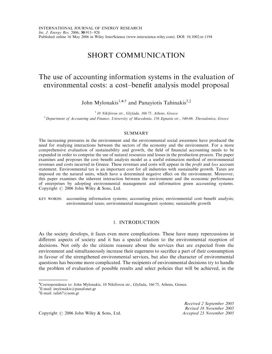 关键词:会计信息系统、会计价格、环境成本效益分析、环境税、环境管理系统、可持续增长