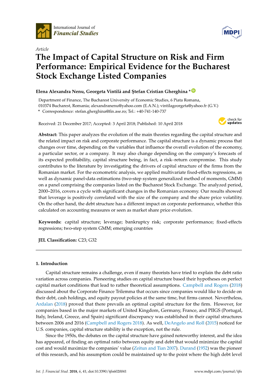 摘要:本文分析了资本结构主要理论的演变及其对风险和企业绩效的影响。资本结构是一个的动态过程,它取决于整体影响经济、特定部门或公司的演变的变量。它也可能会发生变化,这取决于公司对其预期盈利能力的预测,资本结构实际上是风险回报的妥协。本研究将基于调查罗马尼亚市场公司资本结构的驱动因素进行分析。对于计量经济的分析,我们选择布加勒斯特证券交易所上市公司进行应用多变量固定效应回归,以及动态面板数据估计(两步系统广义矩量法)。分析的时期,即2000 - 2016年,涵盖罗马尼亚经济发生重大变化的周期。我们的结果显示,杠杆率与公司规模和股价波动率正相关。另一方面,债务结构对公司业绩有不同的影响,无论是按会计计量还是市场股价演变计算。