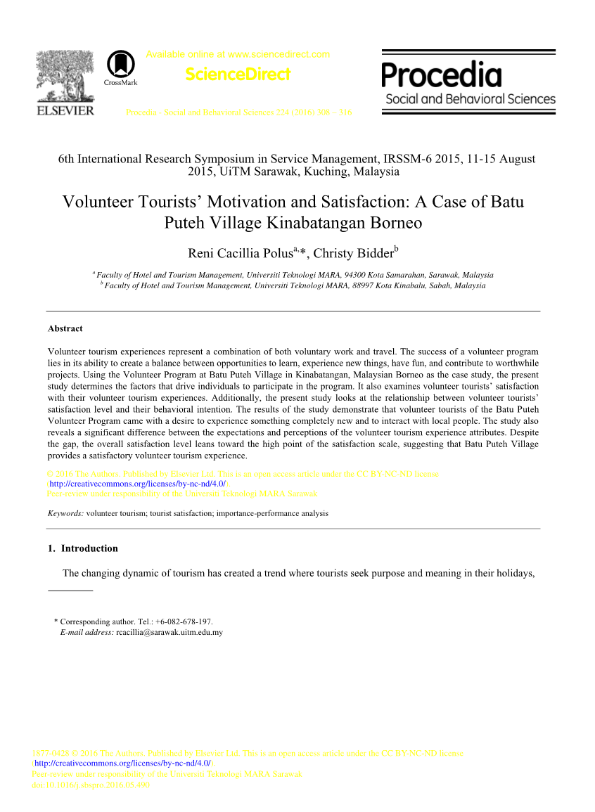志愿者游客的动机和满意度:婆罗洲巴都普特村的案例