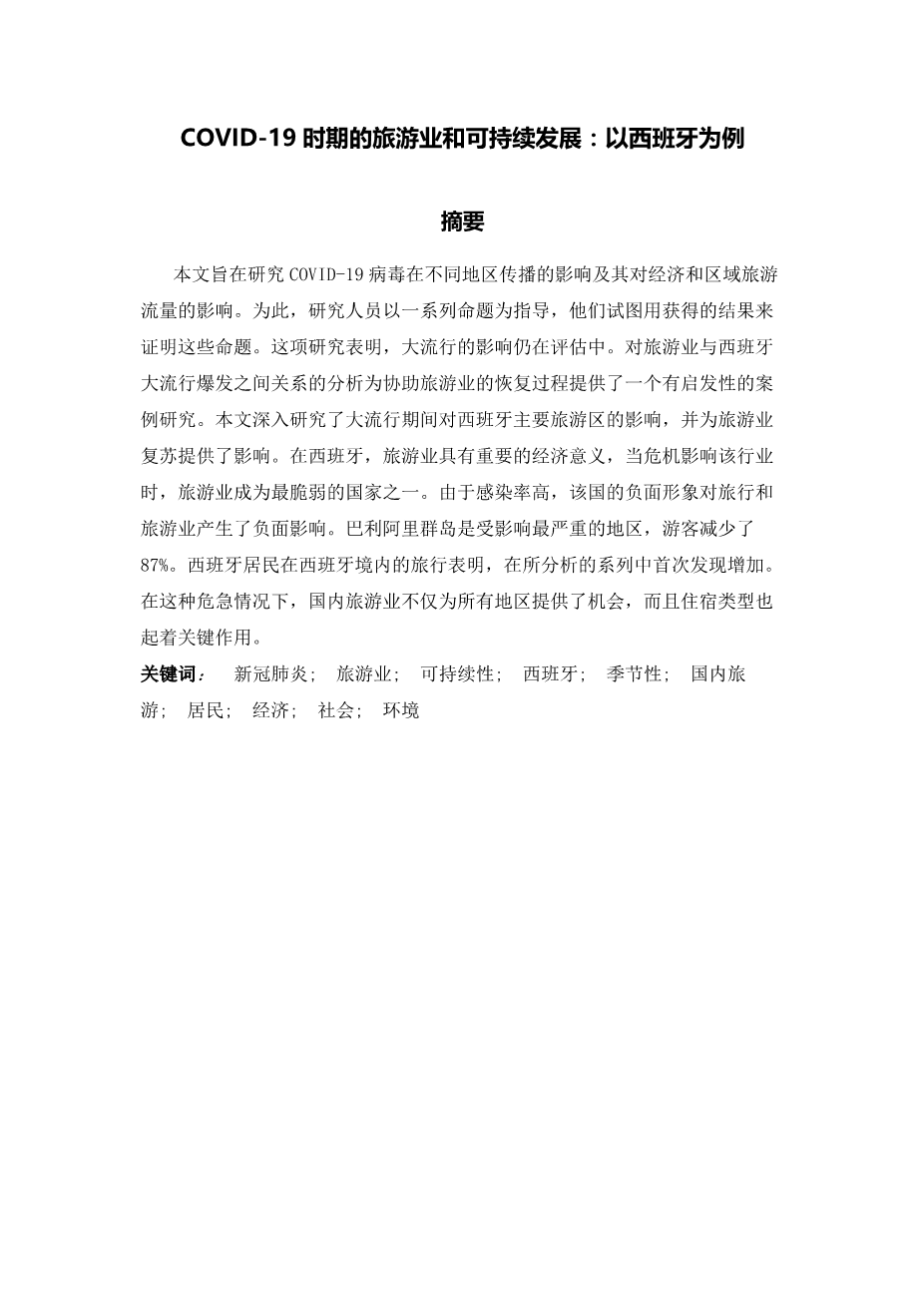 - COVID-19时期的旅游业和可持续发展:以西班牙为例外文翻译资料
