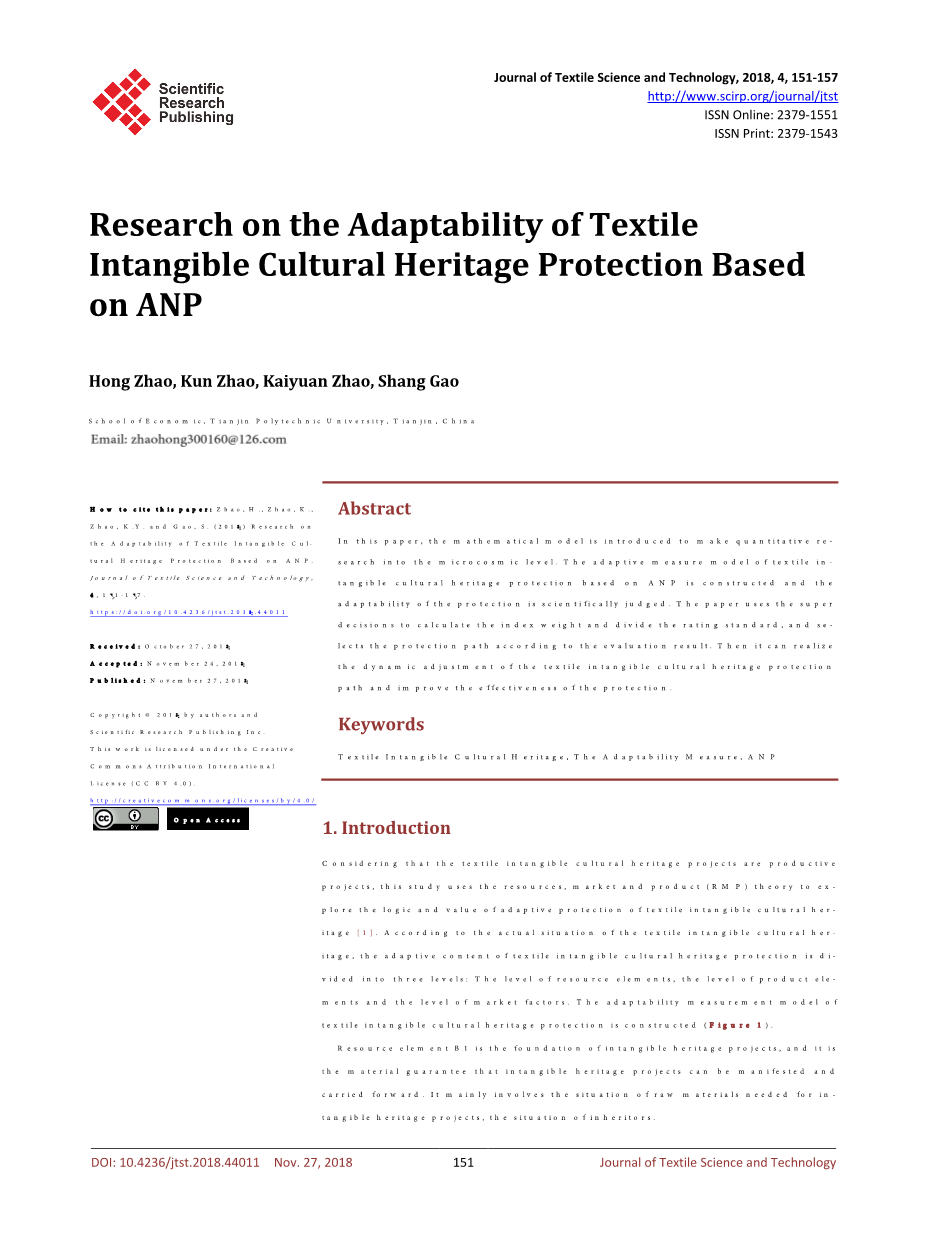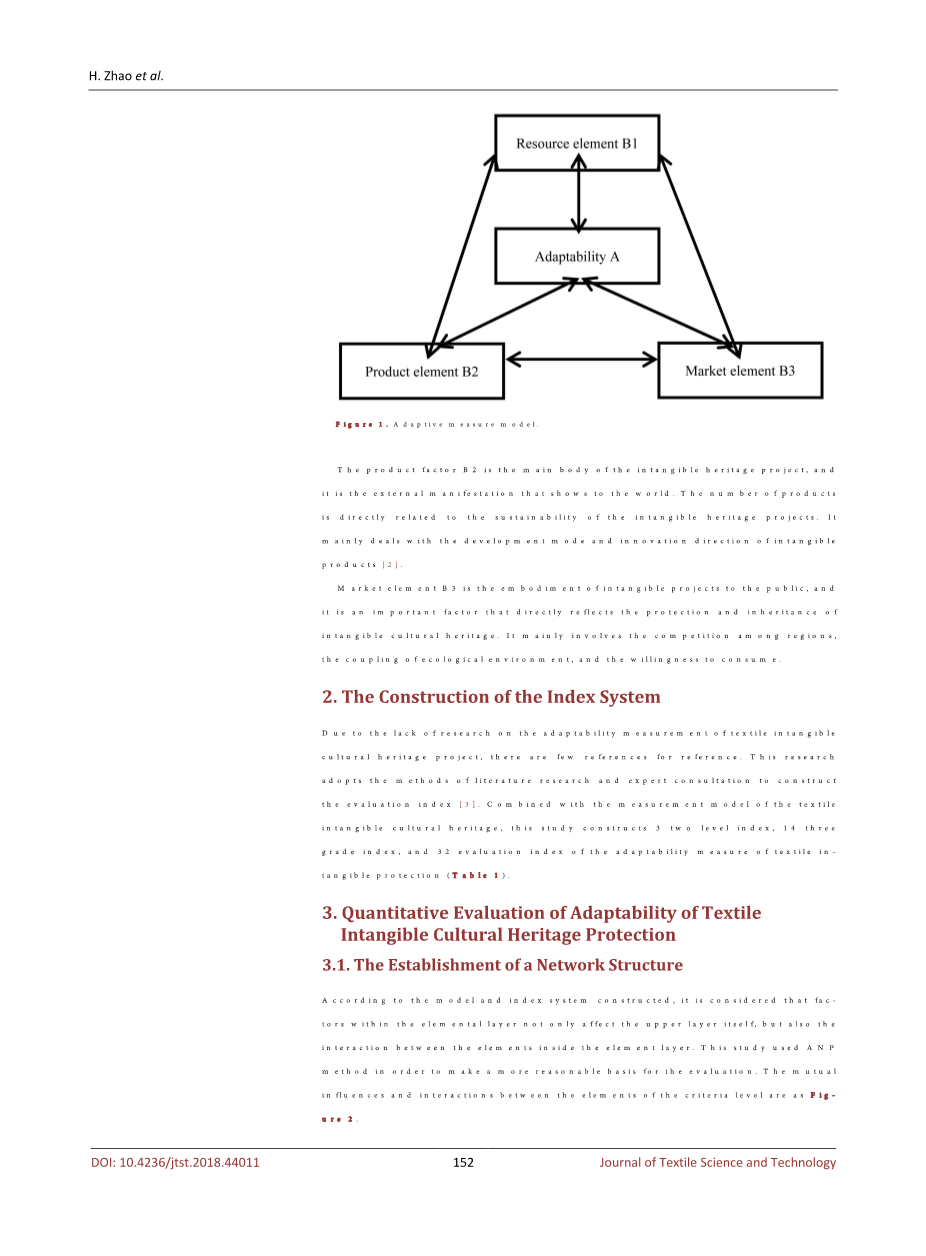 本文引入数学模型,对微观层面进行了定量研究。提出了一种适合纺织行业的自适应测量模型,构建了基于ANP的有形文化遗产保护体系,对纺织品保护适应性的自适应测度模型进行了科学的判断。论文采用超决策法计算指标权重,划分评价标准,并根据评价结果选择保护路径。从而实现纺织非物质文化遗产保护路径的动态调整,提高保护效果。