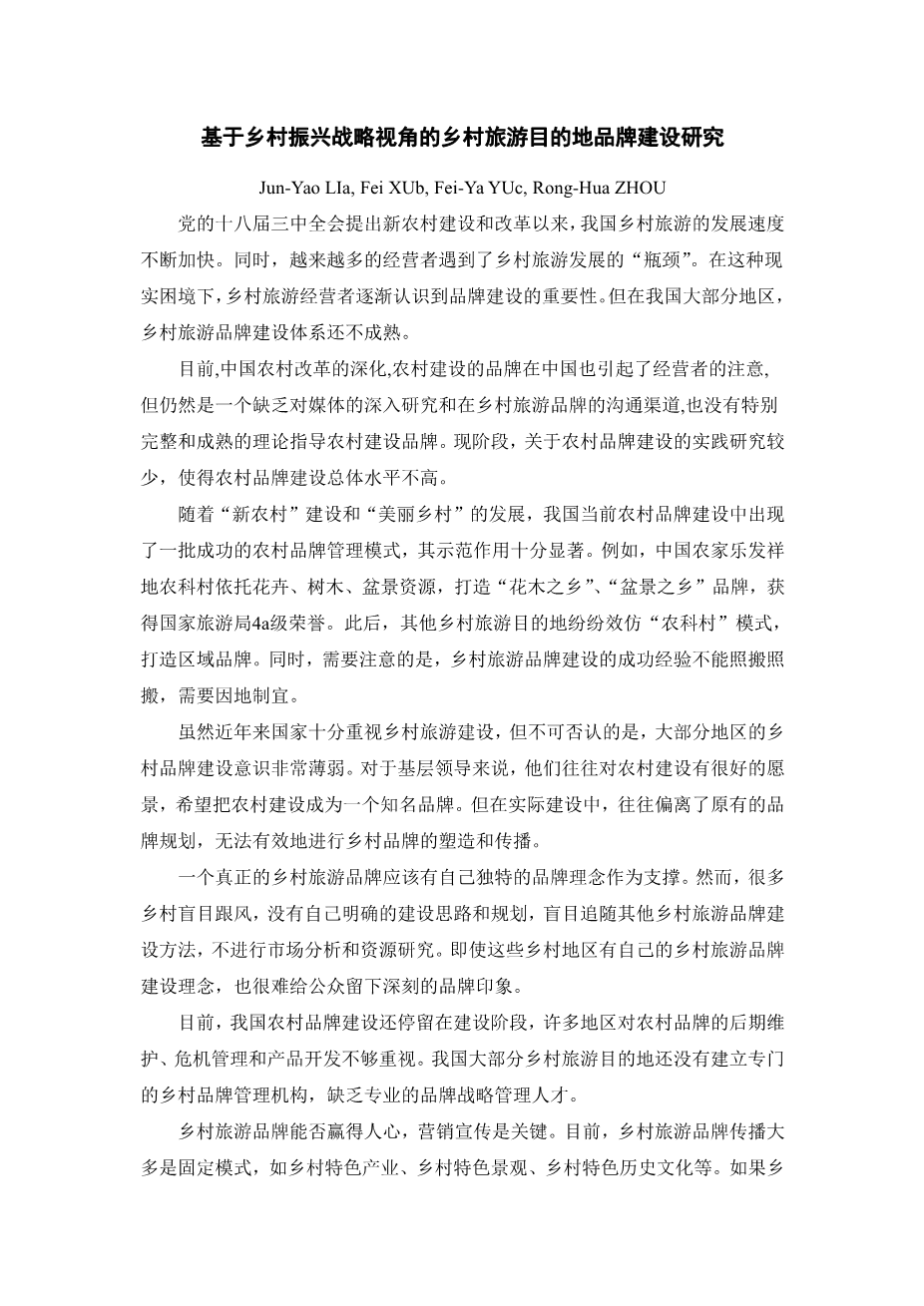 Study on Brand Building of Rural Tourism Destination from the Perspective of Rural Revitalization Strategy