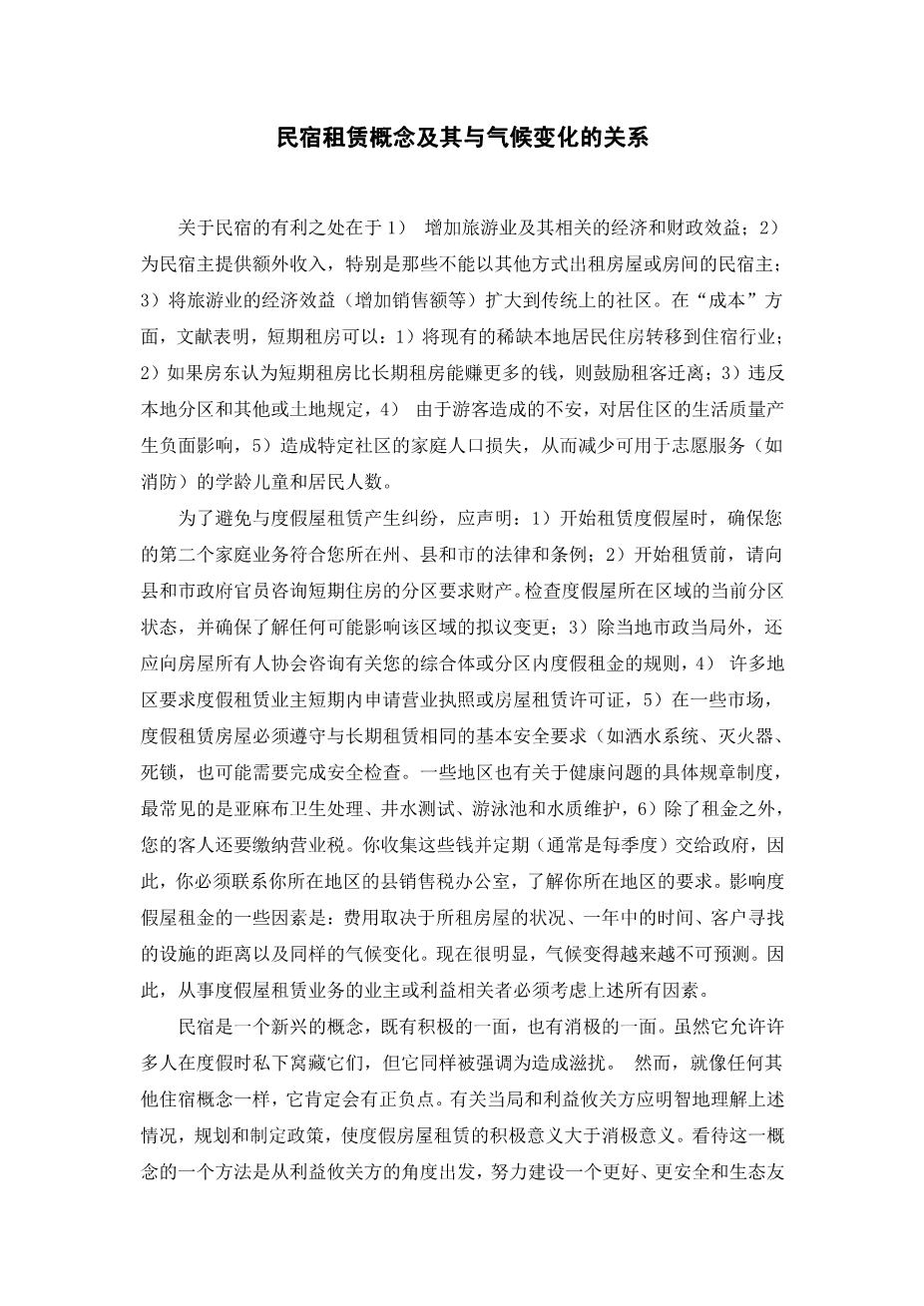 Vacation Home Rental Concept and Its Connection to Climate Change—A Literature Review