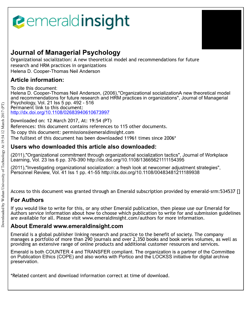 新员工组织社会化进程中集体主义价值观嵌入的作用研究外文翻译资料