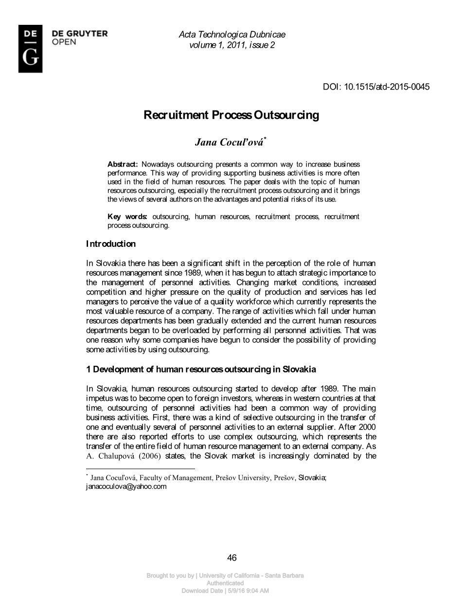 企业的成功在很大程度上取决于员工的专业知识和技能。获得高质量的员工往往是企业管理的一个关键问题,因为许多人已经知道,高质量的员工是实现企业目标的途径,而人才的获取不是一个简单的过程。这通常是公司决定外包这种人事活动的原因之一。目前,外包招聘和选择员工是提高企业绩效的一种常见方式。在文献中,术语RPO(招聘过程外包)用来表示招聘和选择员工的外包过程。