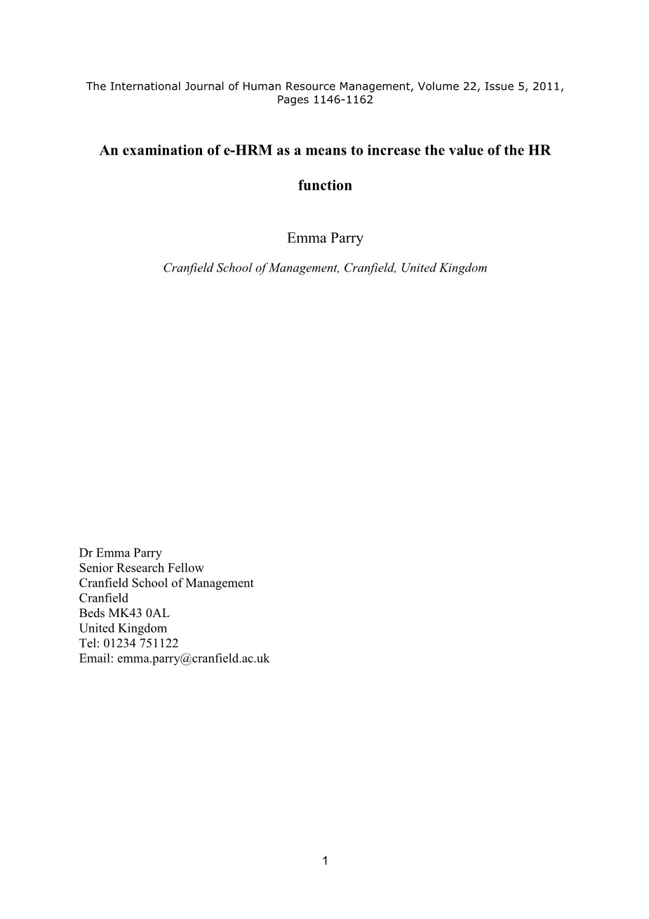 关于e-HRM作为提高人力资源功能价值的手段的考察研究外文翻译资料