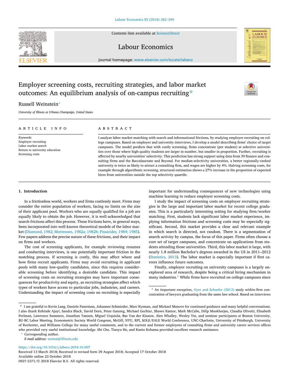 雇主筛选成本,招聘策略和劳动力市场成果:校园招聘的均衡分析
