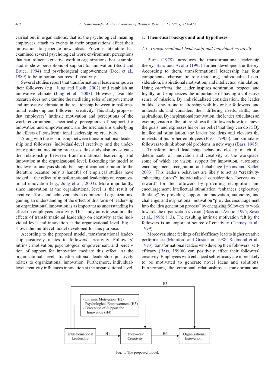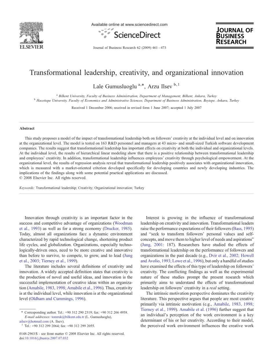 文献题目:Transformational leadership, creativity, and organizational innovation
