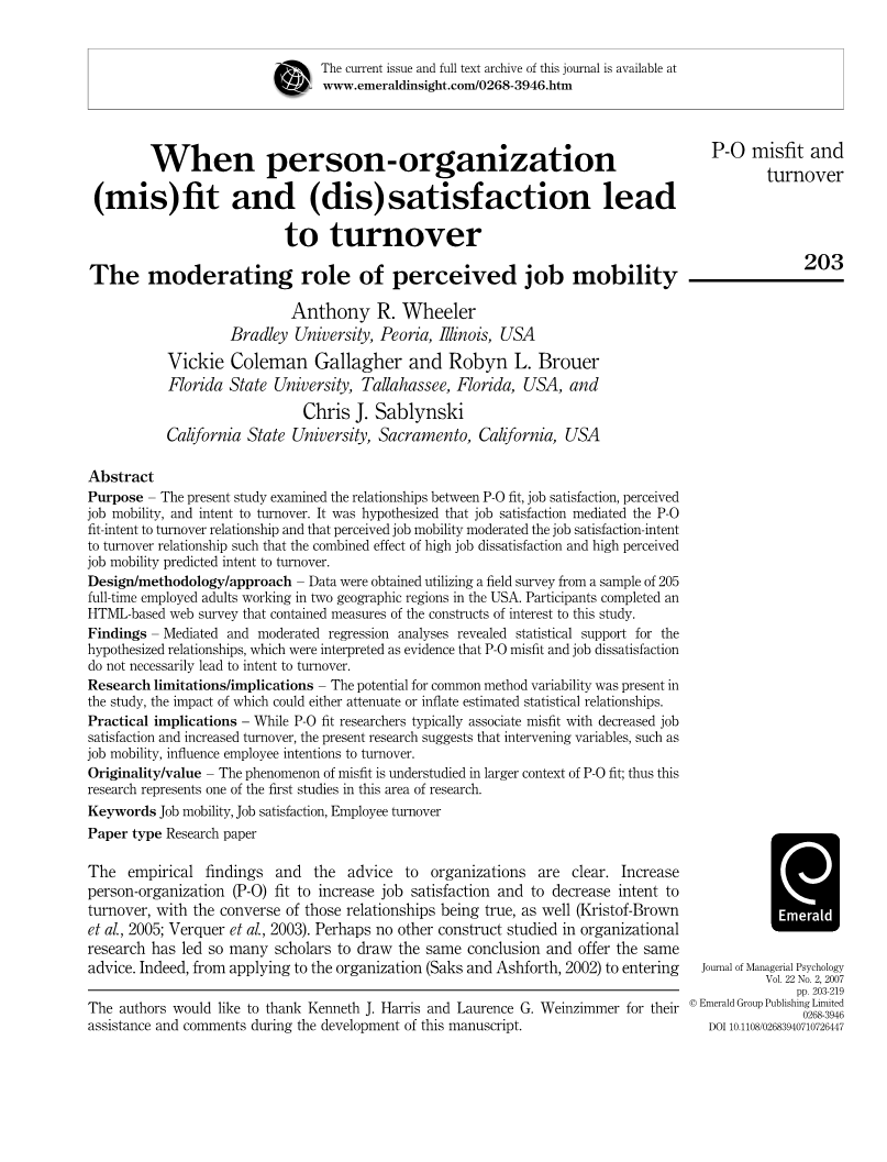 当人员组织适应和满意度导致离职时:感知工作流动的调节作用外文翻译资料
