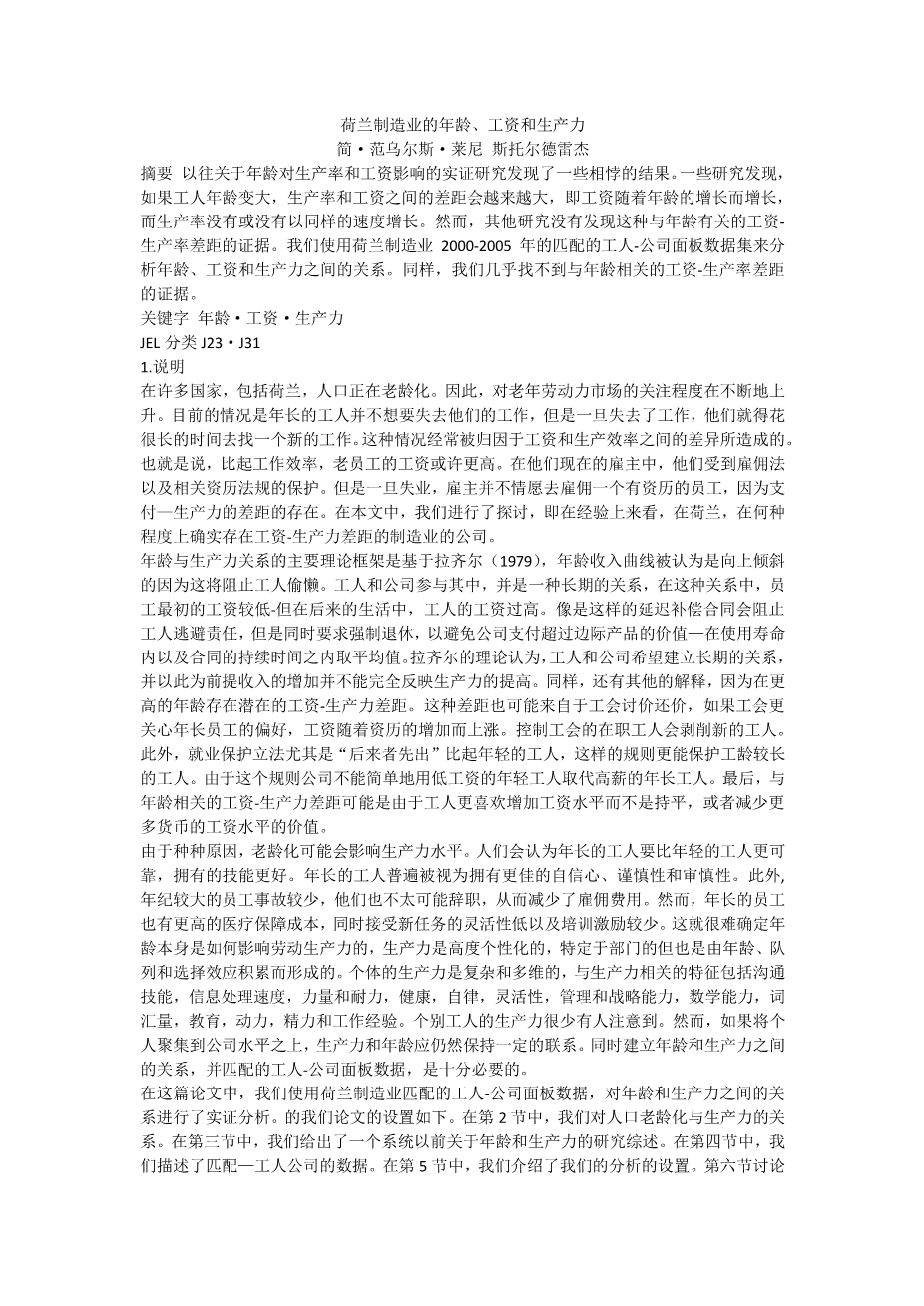 荷兰制造业的年龄、工资和生产力外文翻译资料