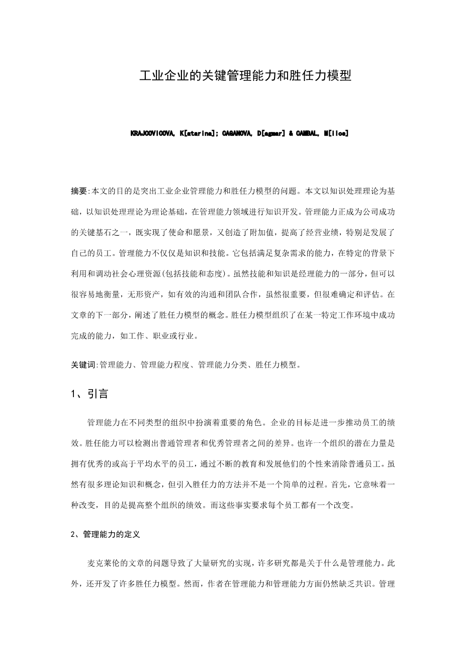 工业企业的关键管理能力和胜任力模型外文翻译资料