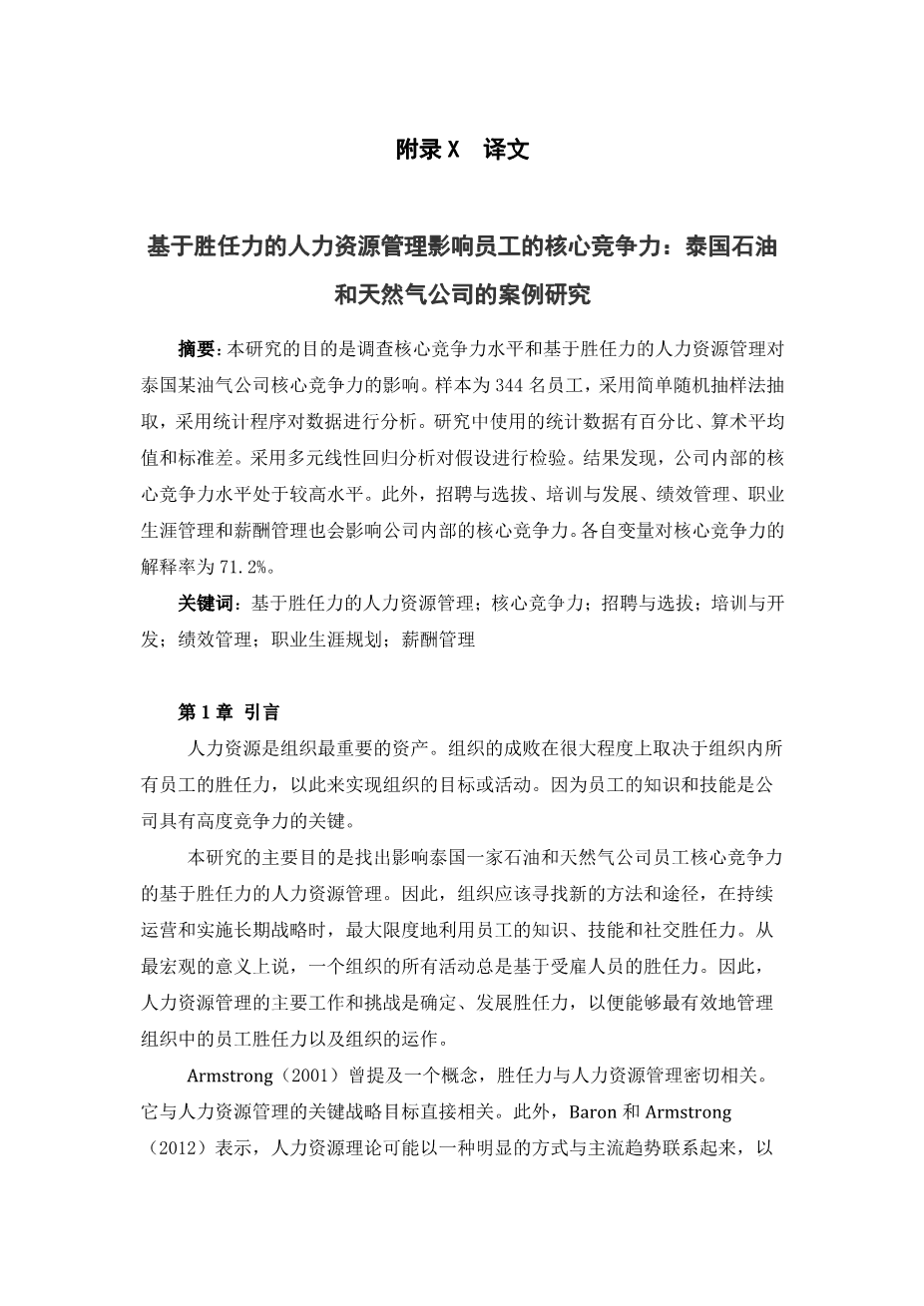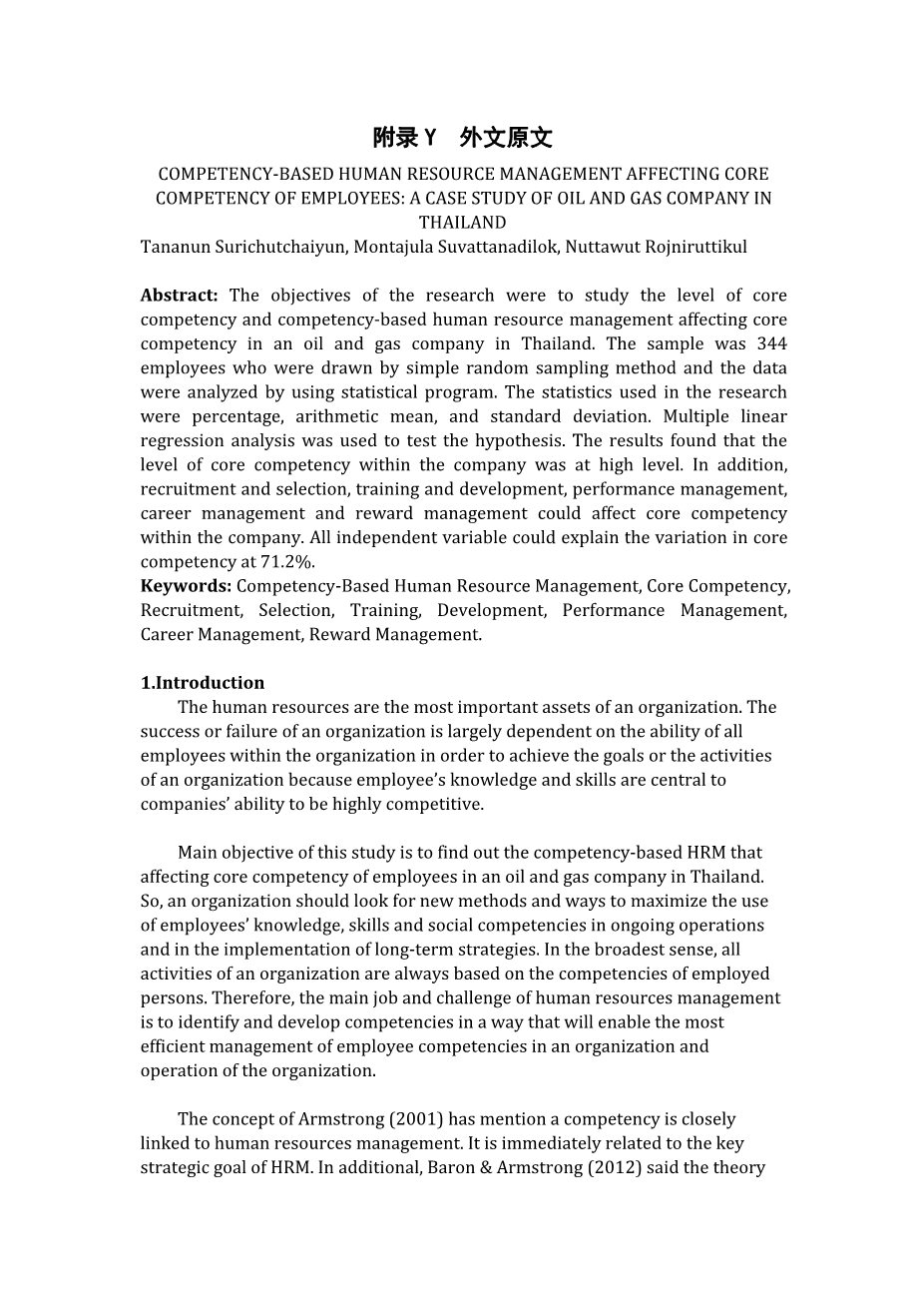 基于胜任力的人力资源管理影响员工的核心竞争力:泰国石油和天然气公司的案例研究外文翻译资料
