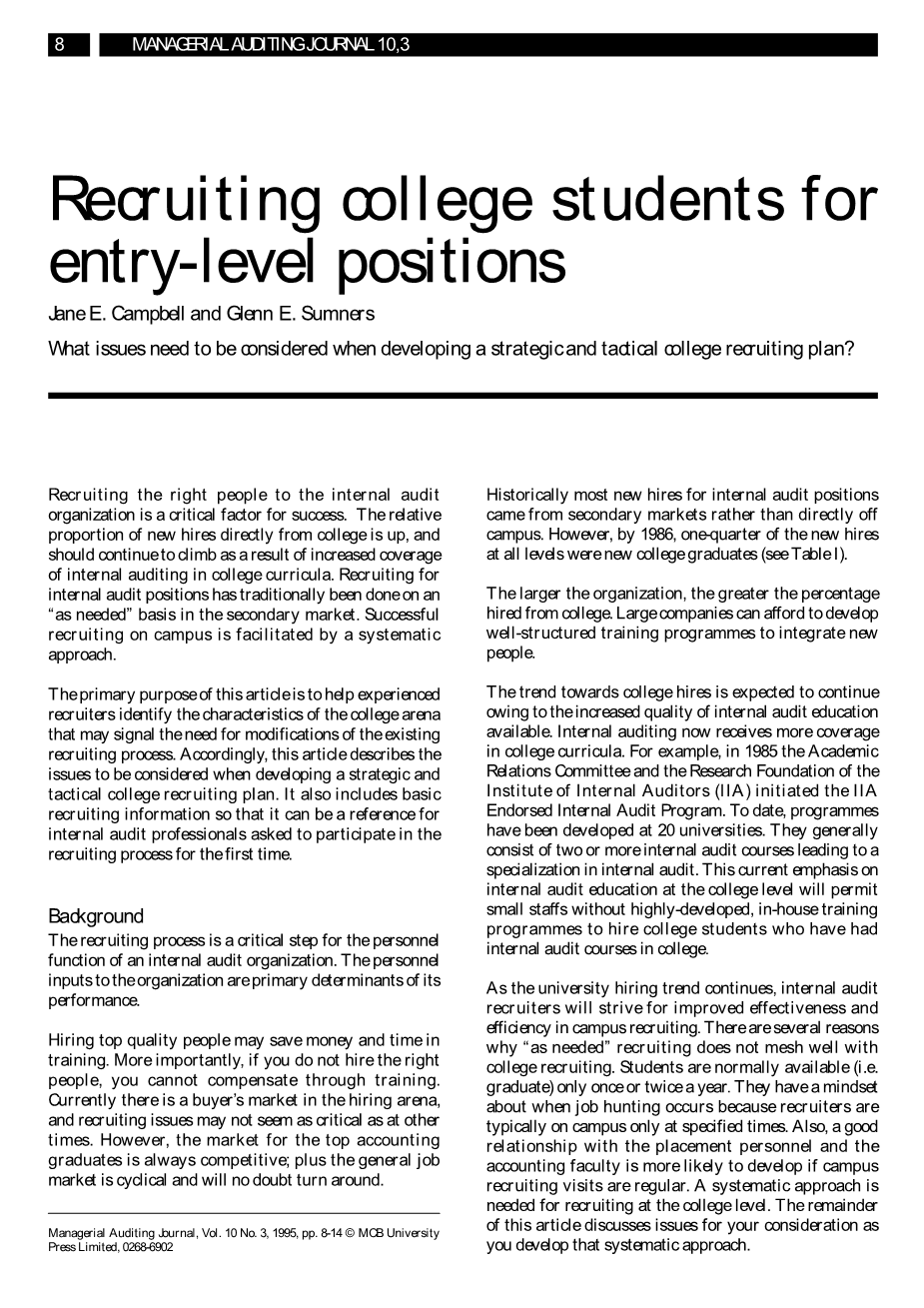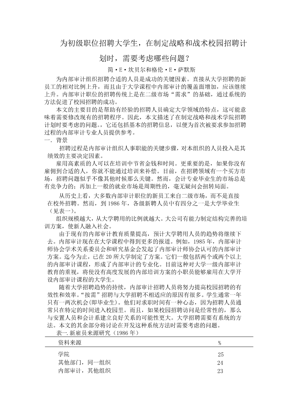 为初级职位招聘大学生,在制定战略和战术校园招聘计划时,需要考虑哪些问题?外文翻译资料