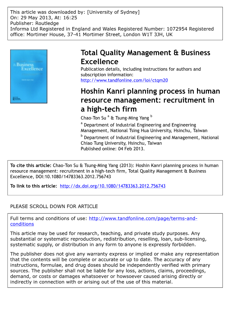 为了验证战略质量管理方法在改变组织文化和改善业务绩效结果在在英国的制造业中小型企业(SME)的适用性,Tennant(2007)认为应用HK特别具有创新性,因为在学术文献中报道的这种日本方法在中小企业中的西方应用很少。该成就代表了通过采用整体绩效评估方法实现业务转型的文化转型的重要交付。Gels(2005)提出了一种方法,使用Hoshin规划来确定最佳的业务流程改进项目。该流程不是猜测项目负责人的工作内容,也不是组织应用精益的组织部分,而是确保领导者将这些宝贵的资源和强大的工具准确地应用到能够提供最大利益的地方。