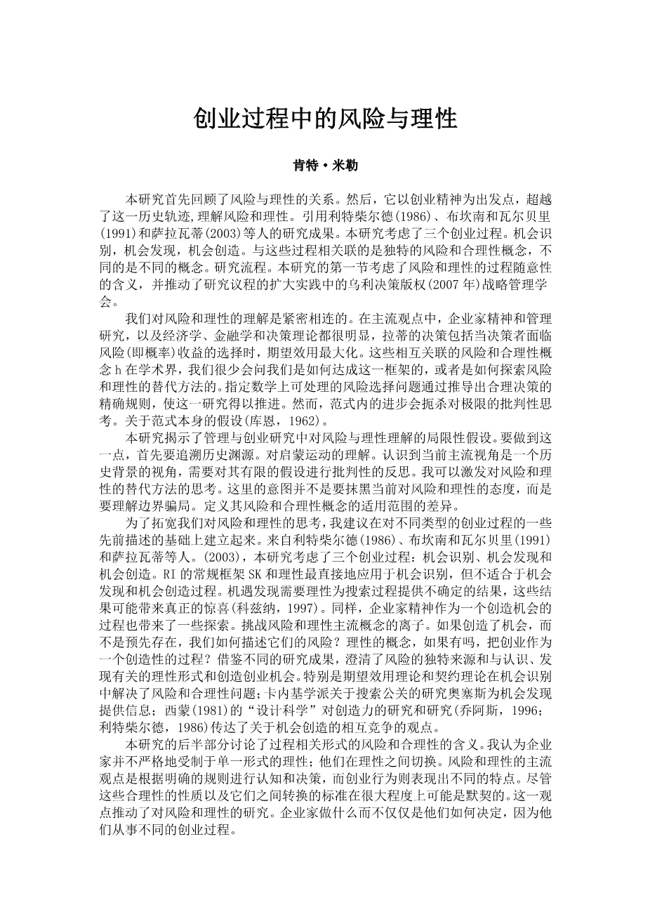 RISK AND RATIONALITY IN ENTREPRENEURIAL PROCESSES