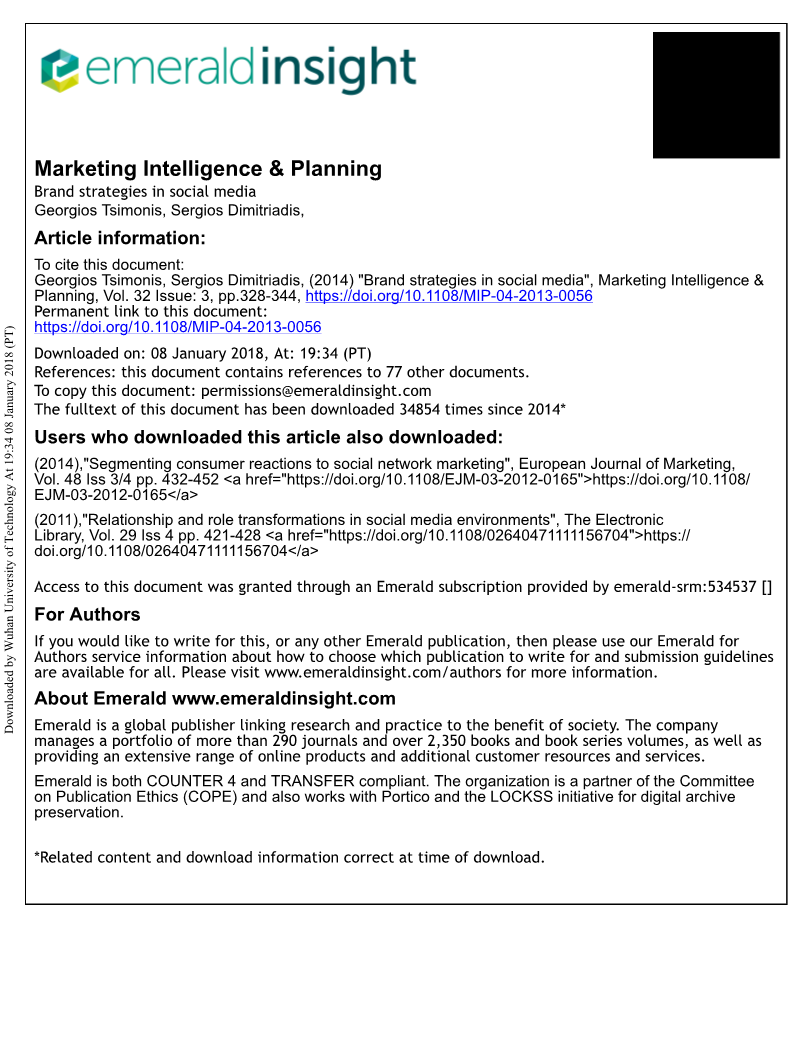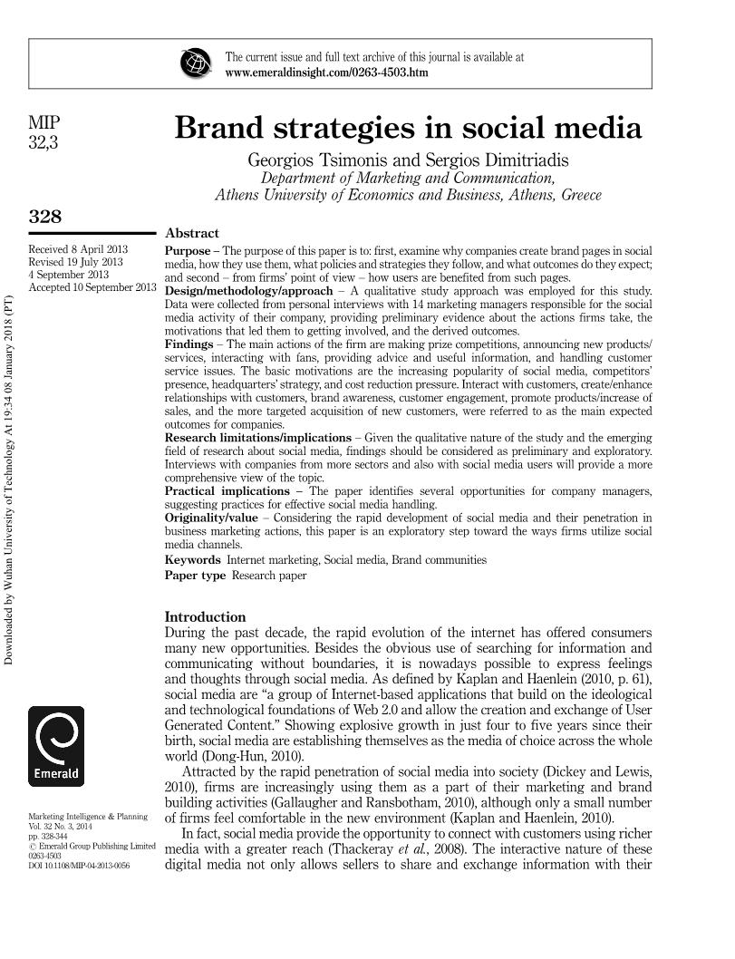 目的——本文的目的是:首先研究企业在社交媒体中创建品牌主页的原因,他们如何使用它们,遵循什么样的政策和策略以及他们期望什么结果;其次,从企业的角度出发,用户如何从这些主页中受益。