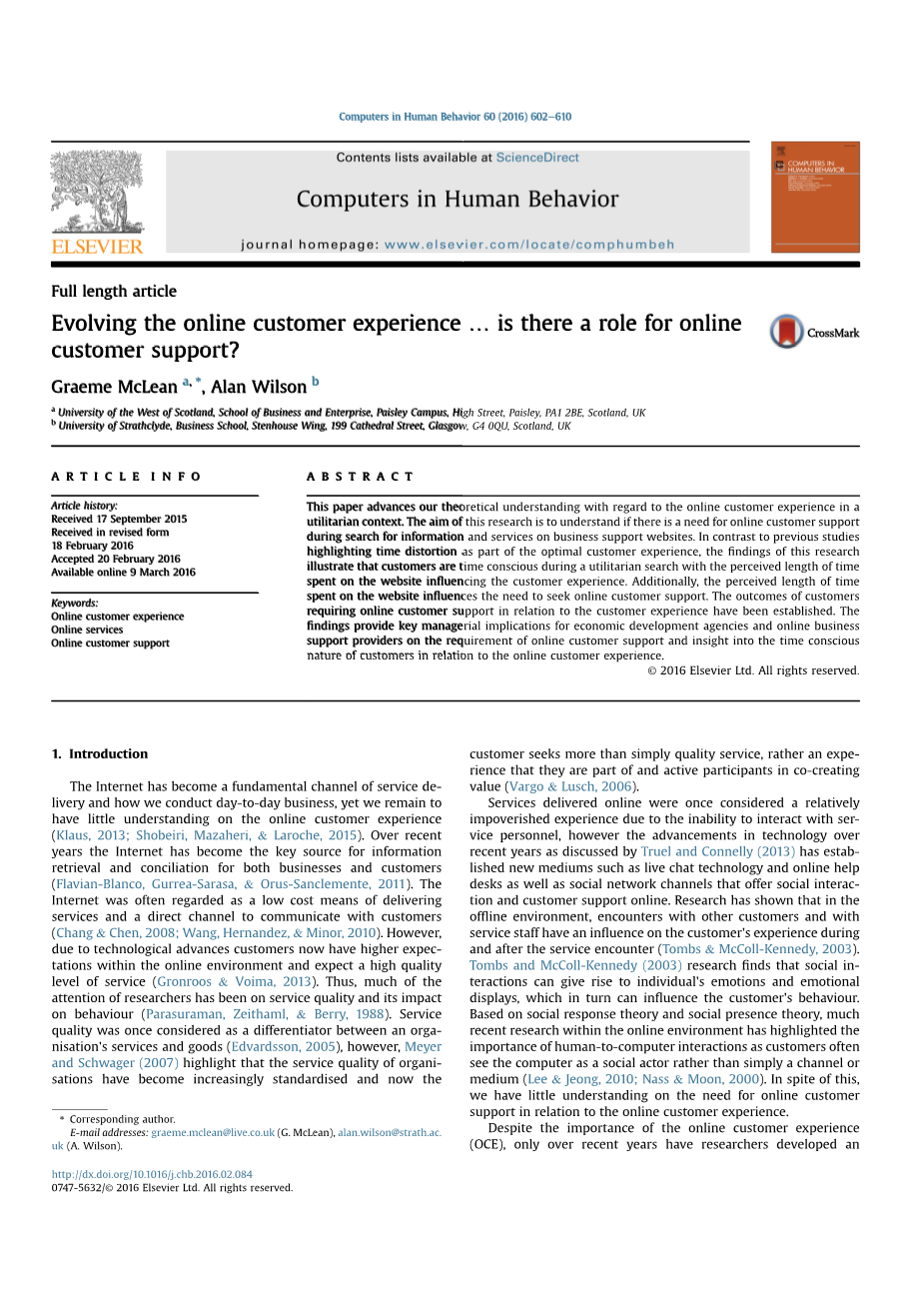 与线下环境中定期与服务人员进行互动,但在线环境中,客户往往需要自行维护,但组织的目标是为客户提供最佳体验(Shank, 2013)。 Kuhlthau(1994)强调,服务提供者的干预可能有助于个人搜索信息.Kuhlthau(1994)在干预区域的工作概述了与其他人进行社交互动的重要性,塞斯。 一个网站上的信息可能被认为是在一个有序的和某种方式,相反,个人搜索任务或需求的特点是不确定性和混乱(Kuhlthau, 2004)。 因此可以看出,网站提供的信息与用户之间经常存在差距信息搜索和使用过程。 技术的采用为了满足客户不断变化的需求,提供客户支持服务正在不断增加(Truel&Connelly, 2013)。 这些服务使客户能够从a。寻求与服务相关的信息公司通过基于网络的同步媒体(通常是在线聊天设施,在线帮助台和 社交网站) 以及通过同 一媒体(Truel &Connelly, 2013)提供帮助的人力服务顾问。