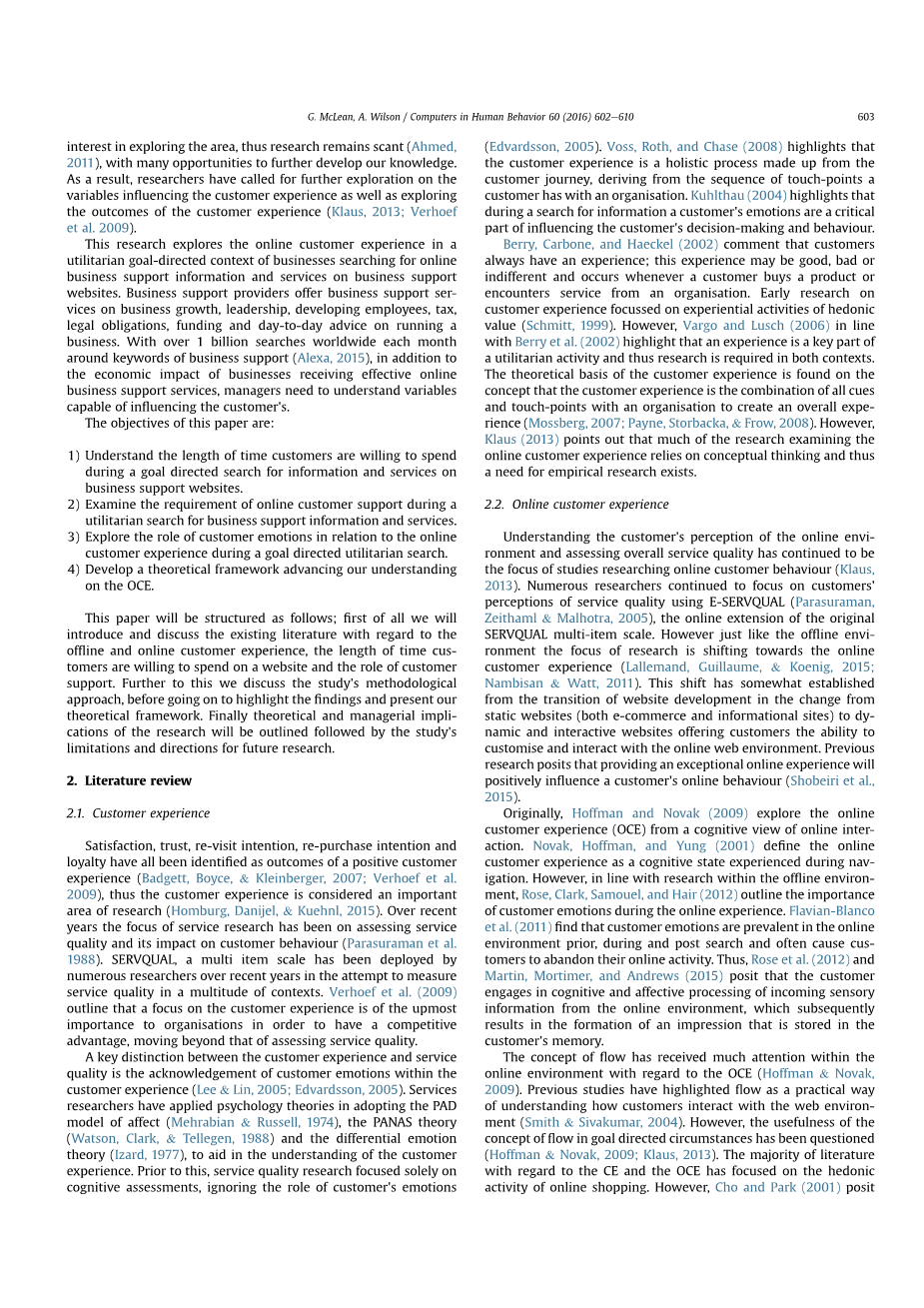 Tombs和McColl-Kennedy(2003)的研究发现,行为可能会导致个人的情绪和情绪表现,进而影响顾客的行为。 基于社会反应理论和社会存在理论,最近在线环境中的研究突出了人机交互的重要性,因为客户经常将计算机视为社交行为者而不是简单的渠道或中(Lee&Jeong, 2010; Nass&Moon, 2000)。 尽管如此,我们对于在线客户的需求知之甚少支持有关在线客户体验。