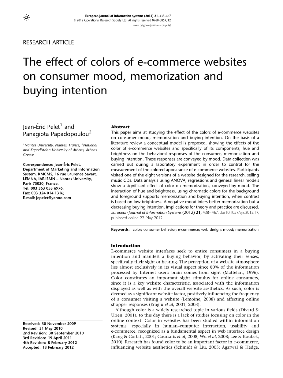 为了了解颜色对消费者记忆的影响,我们必须考虑消费者在访问电子商务网站时记忆信息的质量和数量。我们认为记忆因网站颜色而异,特别是根据背景和文字颜色的对比,这与Hall&Hanna(2003)的研究结果相一致。正如前面所述,这项研究的目的是研究颜色要素而不是颜色本身的影响。