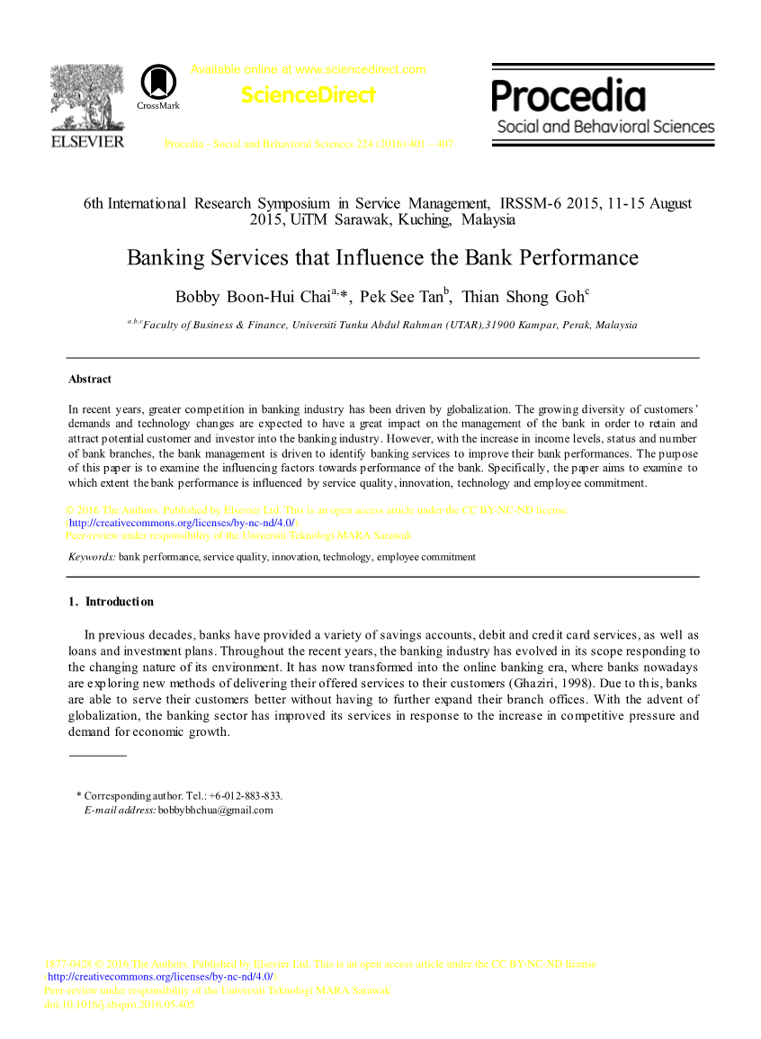 关键词:银行绩效、服务质量、创新、科技、员工忠诚度
