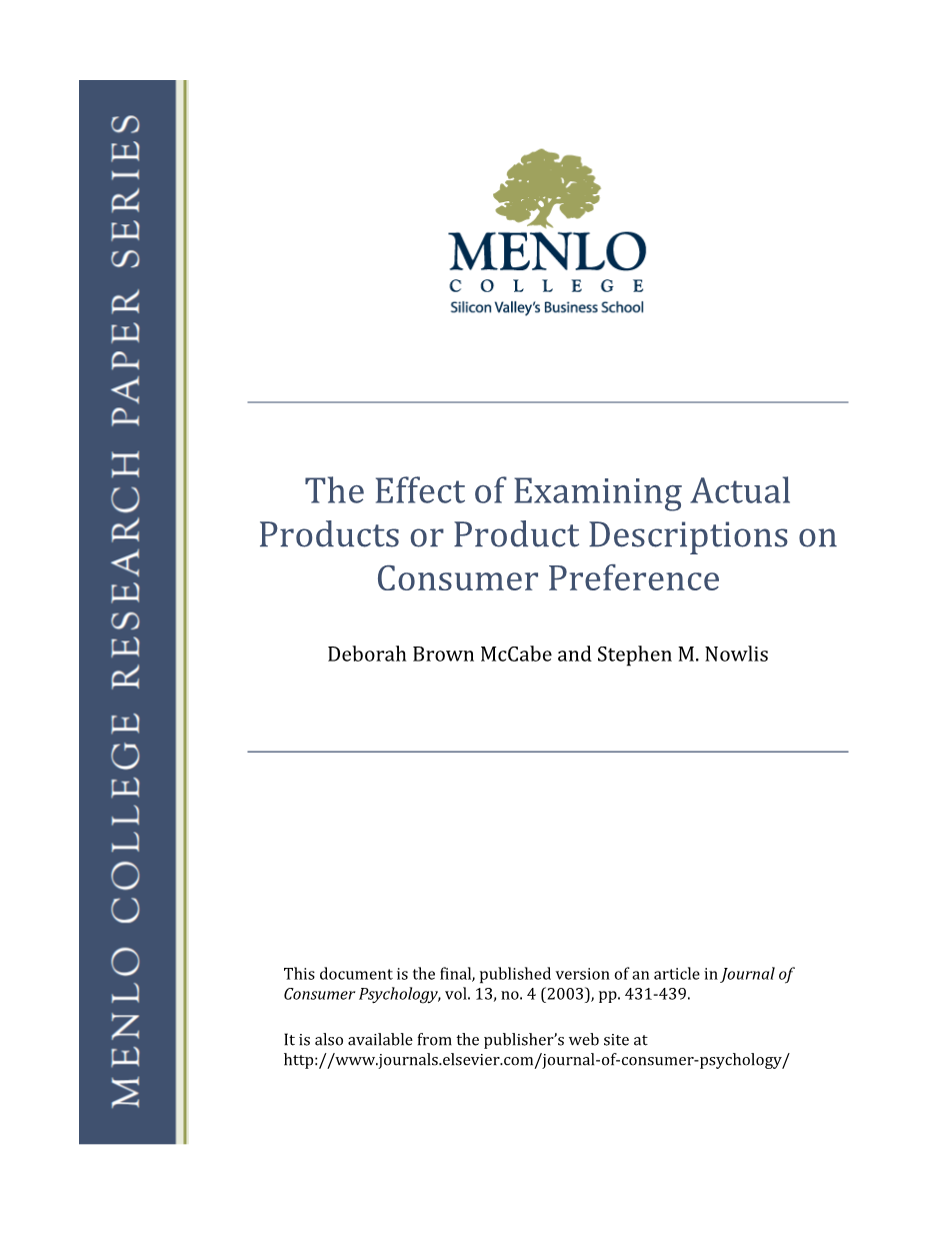 关于实际产品或产品描述对消费者偏好的影响