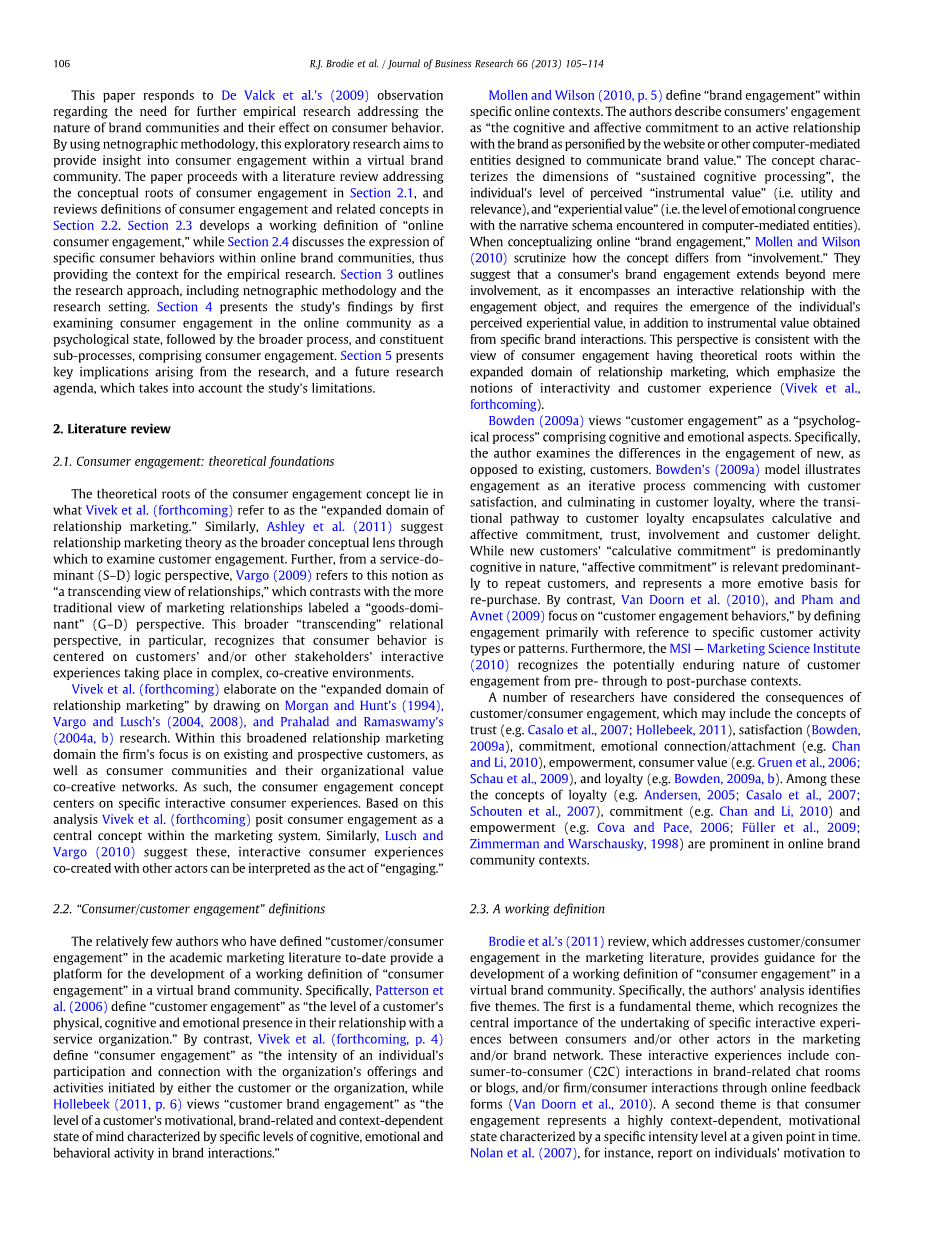 尽管大多数针对虚拟品牌社区中消费者行为的研究未能明确地概念化消费者/消费者参与度,但文献为实证研究提供了基础。