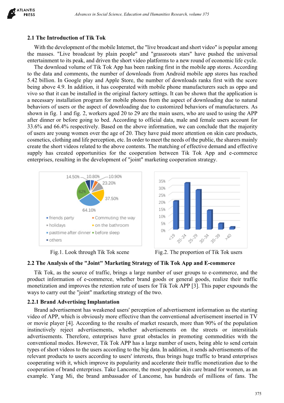 Tik Tok作为流量的来源,为电子商务带来了大量的用户群体,电子商务的产品信息,无论是品牌商品还是普通商品,都实现了流量的货币化,提高了Tik Tok应用的用户保有率[3]。本文阐述了实施两者“联合”营销战略的途径。