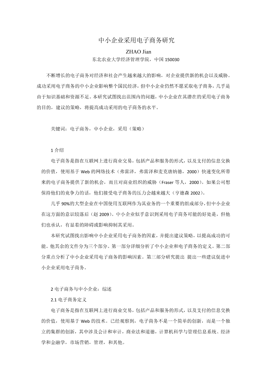 Almost 90% of large corporations in china use the internet as an integral part of their business, but SMEs have been slower to do so (Zhao 2009). SMEs seem to be aware of the possible benefits to be achieved from adopting e-commerce, but they also recognize that there are significant barriers or inhibitors that influence their adoption.