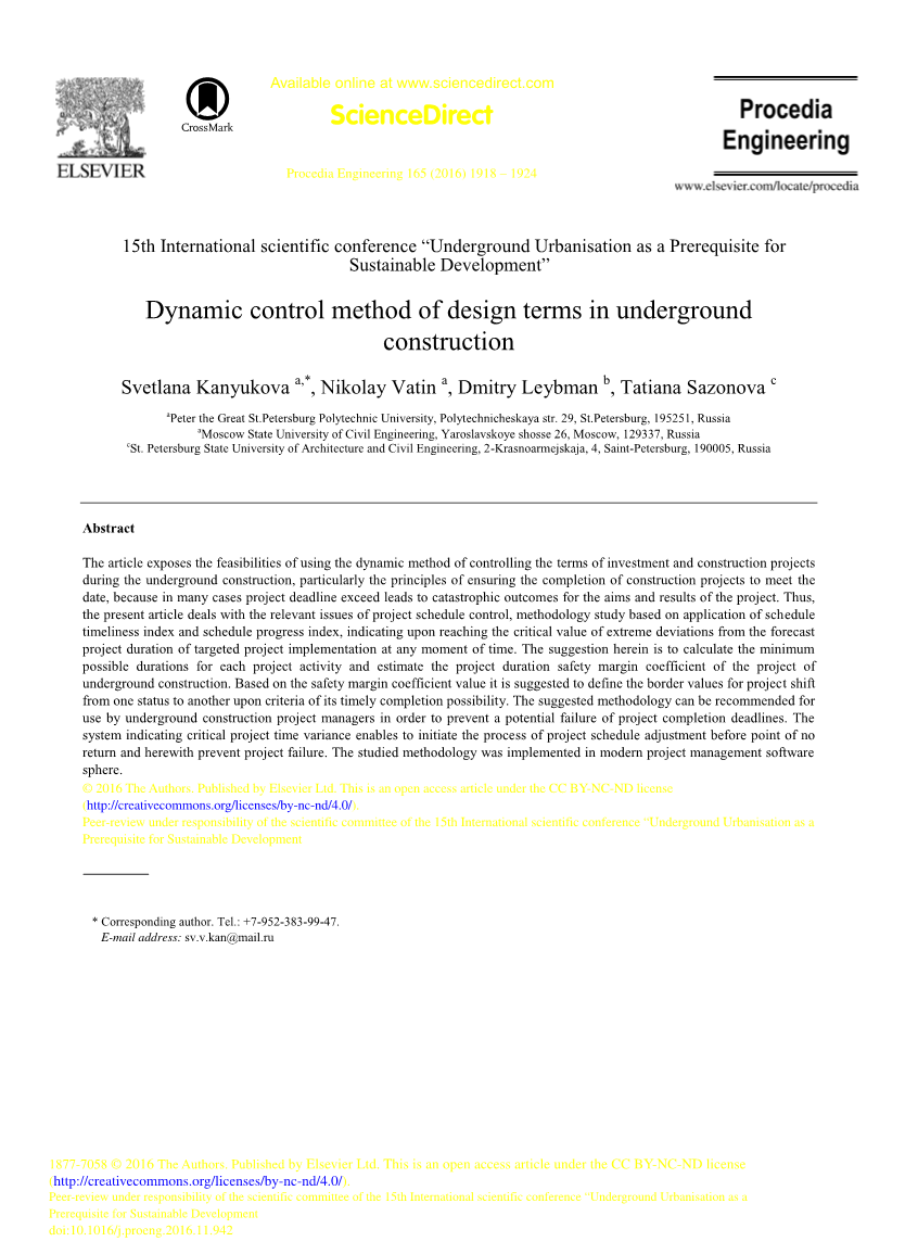Svetlana Kanyukova a,*, Nikolay Vatin a, Dmitry Leybman b, Tatiana Sazonova c