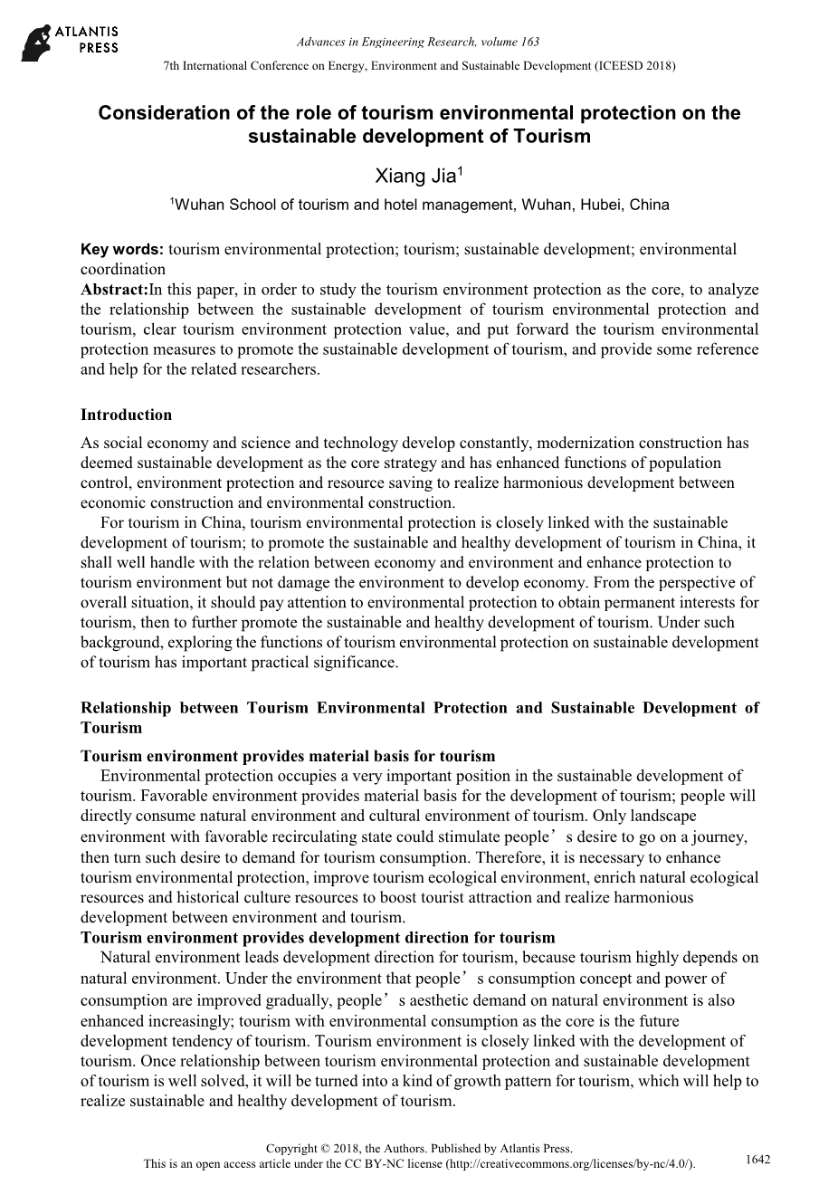 考虑旅游环境保护在旅游业中的作用旅游业的可持续发展
