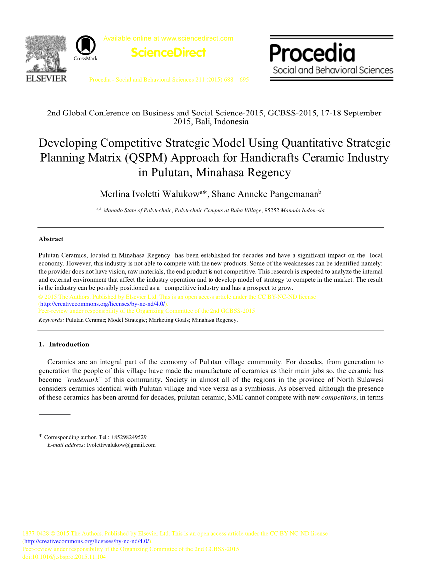 这项研究得出的模型被认为是适合在米纳哈萨县的普鲁坦陶瓷SME实施的竞争策略,它使用几种分析工具来应对竞争,即:(1)定性分析;(2)IFE和EFE矩阵;(3)SPACE矩阵;(4)SWOT矩阵;(5)QSPM。