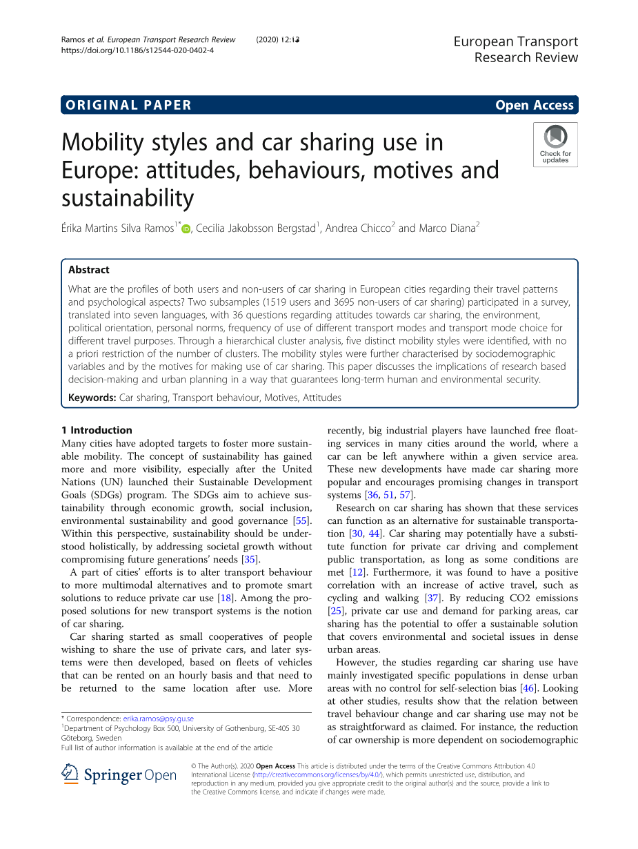 在接下来的章节中,我们将介绍调查方法,以及欧洲各城市的抽样调查。在结果部分,给出了聚类分析,并描述了汽车共享用户和非用户的移动性风格。最后一节从可持续性的整体角度对这些结果对不同利益相关者的影响进行了批判性讨论。